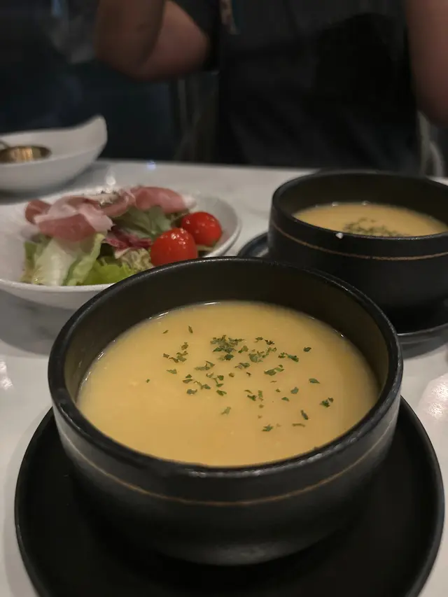 ᴘᴇᴛ ꜰʀɪᴇɴᴅʟʏ嘅餐廳都有驚喜🤭ʟᴜɴᴄʜ去到晏晝五點,包餐湯或沙律同飲品,認真抵食😆最估唔到係居然有新鮮熱辣嘅黑糖餐包🤩 1️⃣ 脆皮德國鹹豬手配蜜糖黑椒汁🐷基本上枱枱都會ᴏʀᴅᴇʀ,招牌菜果然出色🤩 德國鹹豬手真係超級大份,而配菜就有脆薯角同黑醋沙律🥗外皮脆脆,肉質鹹香好厚實,仲係啖啖都無骨😚 一個人食都極大機率食唔哂,所以ꜱʜᴀʀᴇ食就啱哂,性價比好高呀🙈2️⃣ 意大利煙燻豬腩肉卡邦尼意粉🍝卡邦尼係心目中第一位嘅意粉🤣 呢到嘅醬汁係好掛汁 條條意粉都係完美地好入味💦 而且仲有大量嘅菇類同煙燻豬腩肉,愈食愈惹味😋3️⃣ 朱古力心太軟🔥跟餐ᴀᴅᴅ ᴏɴ好抵食😍 激流心嘅朱古力心太軟配上雲呢拿雪糕好邪惡😈心太軟熱辣辣,雪糕凍冰冰,夾住一齊食冷熱交融超吸引🍫4️⃣ 水牛城雞翼🐥一份有兩隻雞翼,一人一隻唔洗爭😌 大大隻嘅雞翼用係水牛城口味,辣辣甜甜好過癮🤭…查看更多
