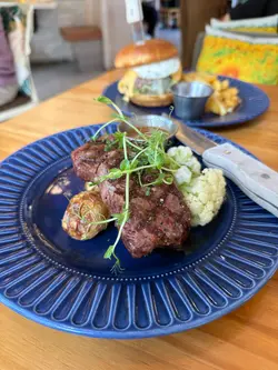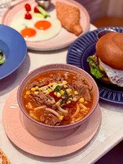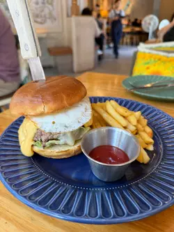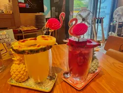 餐廳裝修很有趣味,中間位置有個旋轉木馬的設計,整體很有童趣。整間店每處都有打卡位,食物的擺設和設計都有心思,既賞心悅目,味道又一流,而且是與閨密談心的好地方。手打純牛肉漢堡包($108)使用手打純牛肉,口感紮實多汁,配上秘製醬汁,增添獨特風味。熔岩芝士濃郁拉絲,視覺與味覺雙重享受,太陽蛋滑嫩香濃,與牛肉完美融合,附上薯條,酥脆可口,是經典搭配。鐵鍋炭燒蜜汁燒西班牙栗飼豬($99)採用西班牙栗飼豬,肉質細嫩香甜,鐵鍋炭燒方式,帶出焦香與煙燻風味。蜜汁醬料甜中帶鹹,層次豐富,搭配煎蛋與珍珠米飯,營養均衡又飽足。Dragon Hat($58)紅色火龍果的裝飾非常吸精,飲料內也有火龍果粒,配上菠蘿汁、士多啤梨、梳打水的特飲,非常出色。Pineapple Hat($58)另一款是以新鮮菠蘿片做裝飾,表面有焦糖。特製調飲以菠蘿汁為基礎,加入雪碧和新鮮菠蘿粒,非常爽口。…查看更多