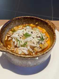 今次黎到呢间西餐厅探店, 系由本地米芝莲厨师主理的创意中法fusion菜,装潢富现代感,仲有水晶大吊灯装饰, 灯光柔和, 感觉很轻松,可以慢慢食和倾下偈。*工人鲜炸薯条( 可自选两款酱汁)㨂咗黑松露酱和黑蒜酱, 薯条即叫即炸, 热辣辣上枱, 食落脆卜卜,点埋酱更惹味和香口*咖啡烟熏西班牙猪鞍呢款猪鞍肉真系几好, 带点烟熏后浓郁的味道,肉质又嫩滑不会干,配搭芥辣汁,苹果红枣泥黑醋汁, 更加提味和没有油腻感,口感真丰富*烧白味噌日本黑鳕鱼鳕鱼烧得外脆内嫩, 十分嫩滑, , 食落口鱼油香满满的, 好味*怀旧糖葱饼配雪糕第一次食呢款创意甜品, 糖葱饼多数系街边见到有卖, 估唔到呢度会有, 食落脆脆的,配埋黑芝麻雪糕,又几特别, 甜而不腻, 唔错唔错*Strawberry Smoothie & Mango passion fruit smoothie两款smoothie都好大杯又冰冻, 不过我自己就喜欢Passion fruit个杯多小小, 小小酸酸地又唔会过甜, 好refresh! 门口有展示做紧大热Labubu优惠, 喜爱Labubu的朋友都快啲黎试下!…查看更多