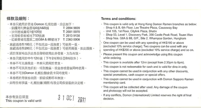 札幌拉麵二人套餐 mjqueen7e等级42011-09-0754 浏览 关注 團購瘋系列 -- 「Domon 札幌拉麵」這個品牌在香港已做了十多年,一直有聽過其名字但還沒有機會一試。早前見有網站以 $138 推售這裡的二人套餐,記得曾看過飲食雜誌介紹,提及蔡瀾是這店的常客,更把自家品牌的日本吉品鮑魚供應給此店作拉麵料,雖然這次團購並沒有此款拉麵提供,但見個套餐價錢適中,而且除拉麵外,還有沙律、餃子、薯餅等日式小吃,所以也買了一張 coupon 和老公來試試。先致電預約星期三來午膳,原來女店員說午間不設預訂,自行 walk in 等位便可以了。噢,更好,由於老公工作較忙,兩點後用膳就最適合不過,既然無需訂位,時間上就更靈活了。銅鑼灣的 Domon 座落於利舞臺六樓,門口除了見慣的 DOMON 字樣之外,還有很大個的「土門」Logo,初頭還有點狐疑是兩間店舖,經了解後,原來發現這裡是「一店兩食」,Domon 供應拉麵小吃,而「土門」就提供日本料理。向店員說出是來享用團購餐後,服務員竟然不是引領我們到店內,而是到店外走廊通道一列連梳化的座檯,幸而座位十分寬敞,加上人流不多,坐得非常舒服。說回這次的二人套餐,優惠券可換領的食物包括有日式柚子大蝦沙律、6 隻自家製日式餃子、4 件鴛鴦薯餅,另外可從牛油拉麵、霜降牛肉熔岩拉麵、黑豚生薑燒定食中,自選任何 2 客。首先上檯的是日式柚子大蝦沙律,據說是用上原隻加拿大海蝦,伴以柚子肉及新鮮有機蔬菜。其實這碟沙律的蝦隻並不算大,而且一碟只得兩隻,柚子肉份量亦很少,猶幸味道都幾 fresh,配上胡麻醬汁,入口酸甜清新,是一道不俗的頭盤。一碟 6 隻的自家製日式餃子,外型飽滿圓潤,而且外皮頗薄,挾上手還有透光的感覺。至於內裡的餡料,材料就包括有豬肉、韭菜、冬菇等,份量下得毫不吝嗇。一口咬下,嗯,肉質欠了點豐潤,而且肉汁亦不多,幸而口感雖乾,吃起來卻有嚼勁,加上餃子底層煎得甚為香脆,餃皮亦頗鬆軟,也算不錯。另外一碟 4 件半圓形的鴛鴦薯餅,共有兩款口味,先講紫色餡料的,其實就是紫芋栗子薯餅,據說是採用了北海道薯加入紫芋及栗子製作,芋頭味不俗,而且咬落滿口綿密香甜,可惜外層脆口得來卻有點硬實,幸而粒粒栗子夠咬口,都可以一試。至於黃色餡心那款,其實是南瓜薯餅,薯餅表層雖然未算特別酥脆,但裡面磨成蓉的南瓜泥,入口還算軟綿香甜,不過伴吃的蛋黃醬,味道怪怪的,還是不沾醬來得更灑脫。主菜方面,雖然知道「牛油拉麵」是 Domon 的招牌菜式之一,而且聽講啲叉燒肥瘦均勻,肉味濃郁,不過早前看過食評,見大多批評此款拉麵的湯底做得過鹹,加上筆者向來亦不特別愛吃牛油,所以就選了另一款,侍者於點餐時一再強調是辣的「霜降牛肉熔岩拉麵」。據說這款拉麵,食材選用了澳洲 M7 和牛,由於其油花分佈均勻且密集,彷如雪霜般,故有「霜降牛肉」之稱。製作方面,牛肉先用辣醬煮熟,再配上多種香料調配成辛辣湯底,服務員把拉麵一放上檯時,筆者已急不及待先喝一口。嘩!辣味果然十分超卓,幸好味道辣得來也不失麵豉的甘香濃鬱和幼滑口感。湯底方面,廚子採用了北海道濃豬骨湯的風格,故此入口頗漿口而味濃。至於啲牛肉,肉質細嫩可口,雖然未至於入口即溶,但口感軟嫩多汁,味道也頗不俗。麵條方面,據說是由小麥麵粉製成的,並且加入了較多的雞蛋,故顏色特別黃,不過咬落麵身又唔多覺有雞蛋香味,但個麵質就頗為滑溜,夠曬煙韌彈牙,浸久了也不覺糊口。至於另一款黑豚生薑燒定食,就有點貨不對辦,皆因印象中「定食」的食物大致上會包括有飯或麵、前菜、味噌湯、茶碗蒸等,但這個定食只有黑豚生薑燒飯一碗,配菜一律欠奉,與團購網上的圖片亦有所出入。味道方面,這個生薑燒是以薑汁及洋蔥炒美國黑豚肉薄片,豬肉入口肥瘦均勻,而且肉質亦不覺嚡口,本來也算不錯,可惜洋蔥的強烈味道完全蓋過了薑味,入口變成了像在吃洋蔥豬肉多一點,失去了生薑燒的神髓,建議廚子應在碗飯臨上桌時才淋上薑汁,使薑味不會揮發,從而帶出豚肉的肉香。總括來說,整份套餐味道不過不失,由於團購餐要另付加一服務費,即 $13.80,故結賬實際支出為 $152。順帶一提,服務質素本來不太差,可惜人手太少,要叫服務員實在頗考客人的耐性和容忍度。…查看更多+ 8以上食记乃用户个人意见 , 并不代表OpenRice之观点。赞好分享札幌拉麵二人套餐 Domon 札幌拉麵 https://s.openrice.com/QrLT0zxmGW0检举 张贴 评分4味道4环境3服务3卫生3抵食推介美食Domon 札幌拉麵店外走廊通道用餐日期2011-08-31用餐途径堂食人均消费$76 (午餐)