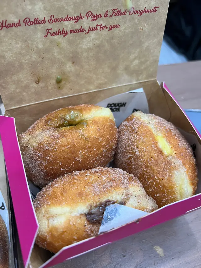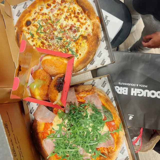 終於試咗呢間專做手工Pizza同冬甩嘅Dough Bros!果然名不虛傳,由餅底到配料都充滿驚喜,絕對係近期試過最印象深刻嘅Pizza店!🍕 Pizza:超有驚喜嘅高質製作!一上枱就聞到濃濃香氣,餅底係關鍵!佢哋係手工薄底,烤到邊位脆口帶焦香,中間卻保持煙韌有嚼勁,麵粉香好出。我今次試咗招牌嘅雙重芝士配意大利辣肉腸,芝士量多到拉絲,辣肉腸鹹香惹味,同新鮮蕃茄醬好夾。最驚喜係食落一啲都唔油膩,餅底夠乾身,食多兩件都無負擔!🍩 冬甩:邪惡得來好滿足!食Pizza點可以唔試埋佢哋嘅冬甩?外層灑滿糖霜,麵包體鬆軟得來帶點空氣感,一咬開入面係流心餡料!試咗朱古力同雲尼拿兩種口味,甜度控制得剛好,唔會死甜,餡料爆漿效果滿分。…查看更多