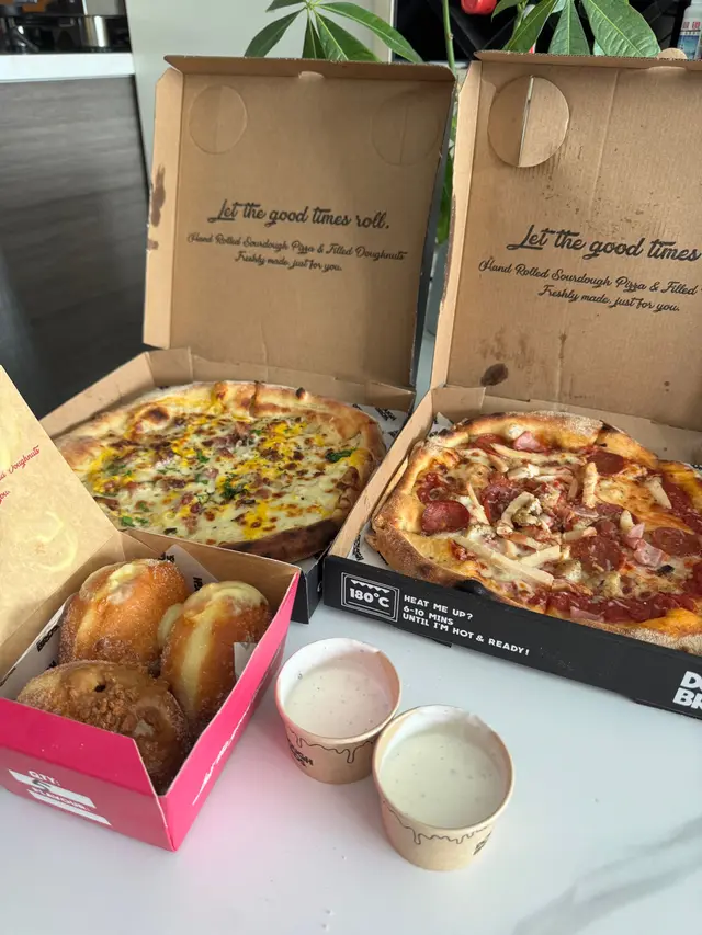 作為dough bros嘅big fan,講緊係得港島分店個時已經食緊,望住佢哋做到第一間九龍分店,再去到而家差唔多十八區都有分店,睇住佢哋成長得咁快真心好感動🤍而作為荃灣街坊,自己係社交平台都成日嗌呢間😆其實真係每款都食過至少一次,冇乜款係覺得唔好食,通常都係叫set,因為set都抵幾多😛今次要咗個Sharing Set for 3-4 ($378),呢個餐包2個pizza,3個冬甩同兩個飲品,個人覺得4人絕對夠食,自己推介大家要啲單價高啲嘅pizza,因為呢到要貴啲嘅pizza都唔使加錢~今次就要咗The Truffle Deluxe,呢個係相對新出嘅pizza,truffle味好出,上面仲有好多奶香味好出嘅水牛芝士同burrata cheese,parma ham夠鹹香,呢個勁推介!另一個pizza就要咗The White King,佢係garlic butter底,食落去蒜香味好出,加埋咗啲檸檬汁會refreshing啲~值得一讚嘅係呢到啲pizza係sourdough底,而且即叫即打,食落特別有咬口,真心幾推介!(額外寫埋個人私心推介:carbonara、the truffle、the parma、pepperoni supreme、bbq chicken,同埋可以嗌half-half揀多幾款口味嘅pizza~)另外就要咗呢到都好出名嘅冬甩,全部都係鮮炸出嚟,食落去勁香,而且仲係流心,所以食嘅時候要墊好小心整到周圍都係🤣三個口味入面最鍾意係Nutella+肉桂糖,呢個真心係食過咁多個配搭入面最好食個個!! Oreo Chocolate都唔錯,Lotus Biscoff就係佢哋嘅招牌,不過甜度相對較高~另外推介大家一定要加BRO's Fried Chicken ($88),呢個炸雞係超juicy,而且炸皮好薄,平時都會加購🤤總括嚟講,呢間啲pizza真心好正,所以真係不斷回訪咗好多次🥹作為member會繼續課金支持dough bros🙌🏻…查看更多