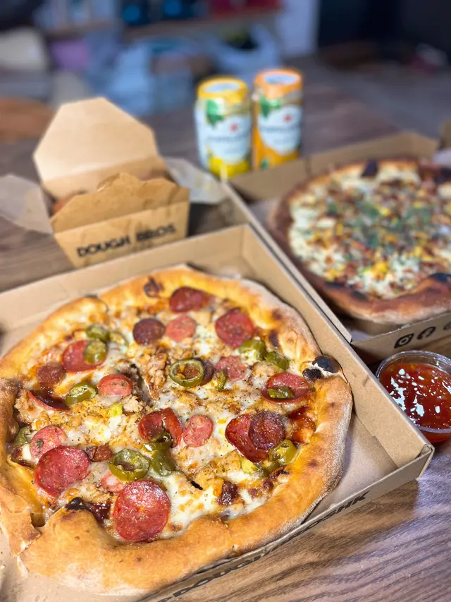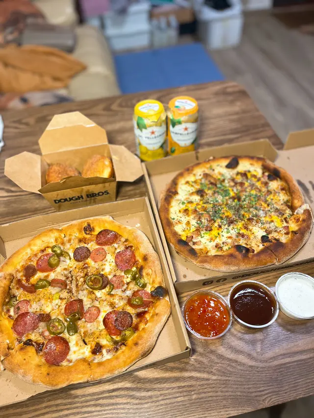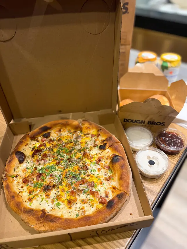 We live in YMT and had been to Dough Bros in Kennedy Town previously and sat in the Belcher Bay Promenade eating our pizzas. However, during summer we wanted to avoid alfresco dining and decided to try bring it all the way back home. This is how it went PS: we didn’t know one had opened in Sheung Wan 😜We had previously ordered the Parma 2.0 and the Maui Wowie, which we throughly enjoyed. This time we order exactly the same, but decided to try their doughnuts 🍩 We ordered 2 x Nutella and 1 x Lemon Pie. Once the order was collected, it took about half an hour to get it back to YMT via the MTR. They were still warm and in good condition, and probably in no better condition than if we had walked to the Belcher Promenade found a seat and ate them outside in the searing heat. The Parma 2.0, the pizza base is lovely and puffy and crispy, the toppings of Parma ham, mozzarella cheese, garlic, roasted mushrooms and rocket complemented each other and when drizzled with the garlic mayonnaise they supply is simply divine. The Maui Wowie, contains smoked ham, pineapple, mozzarella and tomato. The pineapple adds sweetness and goes well with the smoked ham. Again drizzled in the the garlic mayonnaise really elevates the taste of the pizza. Admittedly the crust on the pizzas was slightly tougher as they had cooled down a bit, but the pizzas were tasty, fresh and better than those that could be delivered within our area. The doughnuts were a good dessert, and can be sprinkled in cinnamon and sugar. The dough of the doughnut has a good texture and are not oily. The Nutella doughnut was well had lots of Nutella in it, and the Lemon pie filling was acidic and very sweet. Both nice to try! Both the fillings were very generous and ozzed out when you bit into the doughnuts. …查看更多