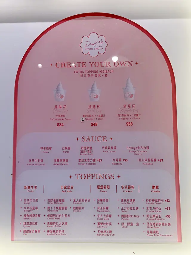 健康乳酪雪糕店Drool Froyo🍦 中環限定威士忌蘋果脆🍎打卡免費送Croffle!😆身為乳酪雪糕控,今次專登走咗去📍中環Drool Froyo試佢哋嘅乳酪雪糕!口感真係冇得彈,輕盈綿密,酸甜比例啱啱好,食完成杯都唔會覺得滯🤤中環店限定有好多酒味嘅雪糕選擇,今次揀咗「威士忌蘋果脆」舀落去已經聞到陣陣酒香。佢哋個威士忌🥃焦糖忌廉醬香濃幼滑,焦糖嘅甜完美中和咗威士忌嘅烈,剩返陣陣醇香。再配埋清甜嘅肉桂蘋果粒同脆口嘅蘋果脆脆,三種唔同口感同味道,層次豐富~不過我個人最鍾意都係 「黃金寶」!芒果🥭香甜多汁,最正係搭配咗煙韌嘅麻糬,同乳酪嘅軟滑形成強烈對比。面頭仲有杏仁脆脆就提供咗堅果香同脆口感覺,再淋上天然嘅野生蜜糖,帶出溫和嘅甜味,令成個組合又豐富又和諧,口感同味道都滿分!🤤🤤🤤🆓記住打卡免費換Croffle!😍揀咗 「酸甜可口雙莓」,熱辣辣嘅牛角窩夫外脆內軟,配埋酸酸甜甜嘅雙莓醬同乳酪,冷熱交融嘅口感真係邪惡到極點!Drool Froyo絕對係必encore嘅健康甜品店🤤有得食,又有得打卡🥰狗狗仲可以免費食😍😍天后&中環店逢星期五/六日及公眾假期,都會開到凌晨12點🤩飲完酒仲可以食番杯雪糕🍦…查看更多