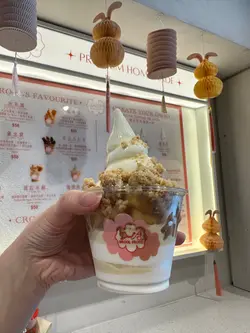 The highlight✨here is that the Central branch has special alcohol-infused options like rum raisin, Baileys, plum wine, and whisky🍸 It’s not your typical froyo experience – more of a grown-up treat🤭 Skip the bar! Come enjoy alcohol-infused froyo instead!🍾The Menu comes in 3 main sections📝Signature yogurt combinations; Create-your-own (choose your sauce and as many toppings as you like🤡); and Croffles with froyo on topWhisky Hour🥃whisky sauce|apple crumble|cinnamon appleCentral only! The whisky note is noticeable but not overpowering, and the mix of spiced apple🍎 and crunchy crumble makes it taste like a luxe dessert cup🧁Matcha Garden🍵blueberry|matcha mochi|palmier|matcha milk spreadThe matcha isn’t overly earthy thanks to the addition of milk🥛 which makes the flavor smoother and more approachable. Balanced by the fresh blueberry🫐 and chewy mochi. The palmier adds a nice crisp bite, while the generous swirl of frozen yogurt ties it all together.Berry’s Joy🥐Large portion of frozen yogurt generously covers a hot croffle. Fun contrast of hot and cold🥶 tho the froyo melts really fast due to the heat📸Even your furry friend might start drooling when they see the yogurt 🐶 but no worries, the shop has free paw cups ready for them too🤤 which is such a thoughtful detail if you’re bringing your pets along🦮The shop has a lot of cute spots for photos, with good lighting that makes everything looks amazing🧱…查看更多