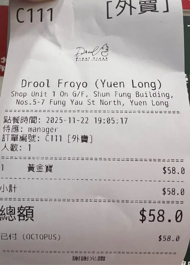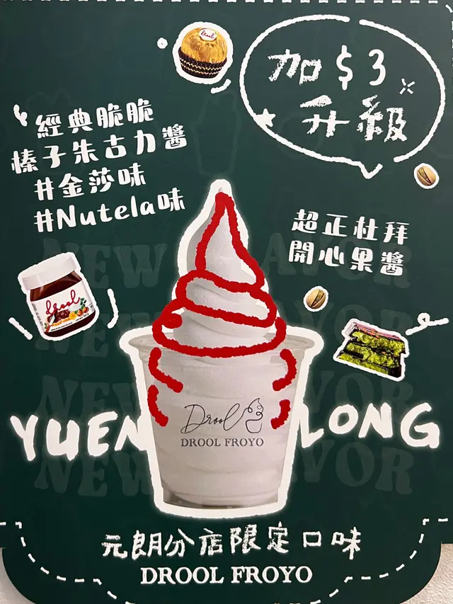Drool Froyo (元朗) 网址: https://s.openrice.com/QrLS0fJKF00 地址: 香港元朗鳳攸北街5-9號順豐大廈地下01號舖