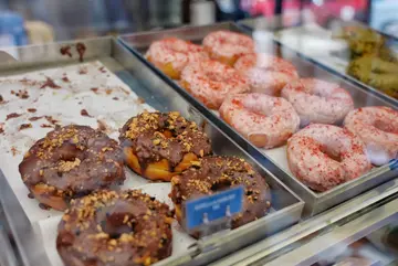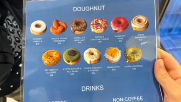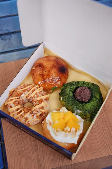 “Man doesn’t live by coffee alone.Have some doughnut”啡游食Bagel 食到闷闷地不如转吓口味讲到Doughnut美国有绿色代表 - KK园💚日本有红色代表 - 冬甩先生❤️唔讲唔知原来泰国都有间蓝色代表- Drop by Dough 💙品牌喺2019年创立、目前喺曼谷有Central World 同另外两间分店香港一号店选址上环以深蓝色调配搭木墙同橙白格仔地板品牌仲出咗唔少自家精品(有香港限定款!)几幅卡通挂画令用餐环境当堂活泼哂冬甩以甜味为主: 开心果、椰子、Cream Brûlée 等 据闻佢哋仲出过咸蛋黄、烟三文鱼等咸味系列、期待~座位只有廿个左右唔想等位可以外卖佢个纸盒好 QQ 、外卖顺便可以试多几款🔖 Raspberry Rose (推荐) 馅料非常多、酸甜之余带阵阵玫瑰香气🔖 Lemon Meringue HK$42面层蛋白霜系忌廉质感、无一般咁甜🔖 Matcha & Red Bean HK$46🔖 Latte HK$45❣️ 堂食饮品有机会纸杯上、想要堂饮杯落单时要确认一下新店未有Menu,可以请店员介绍、冬甩一般$HK4X…查看更多