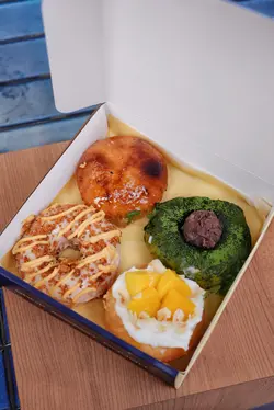 生活好忙碌,都唔記得咗幾耐冇去試新店😩 好彩苦中總有一點甜,就係同兩位foodie朋友黎到試新開嘅泰國過江龍doughnut店「Drop By Dough🍩」❣️餐廳距離地鐵站好近👍🏻 店面裝潢主調係優雅嘅寶藍色,室外有少量座位方便打卡;室外空間感大,裝修擺設有風格,尤其係埋邊嘅鏡面大冬甩🍩冬甩口味眾多,而且賣相色彩繽紛,睇見都流晒口水,一行人試咗四款口味,真係各有千秋😍 《 Mango Kati 》 $48 4.5 / 5食落味道似食緊椰汁芒果糯米飯,入面仲要係爆漿,真係好refreshing😍 《 Salted Egg Custard 》 $48 4.5 / 5鹹香十足,再加埋面頭嘅脆脆粒口感更加豐富👍🏻 《 Crème Brûlée 》 $48 4.5 / 5經典口味,表面嘅焦糖好有焦香,入面嘅醬都係多到漏晒出黎🤤《 Kyoto Matcha & Red Bean 》 $46 4.5 / 5抹茶控都會喜歡嘅口味,甘甘甜甜👍🏻 唯一不足係紅豆集中晒喺中間想一次過食晒抹茶同紅豆有啲難度😝總括而言,冬甩嘅質感鬆軟,唔會太甜食完都冇飽滯感,口味好多同有新意👍🏻 …查看更多