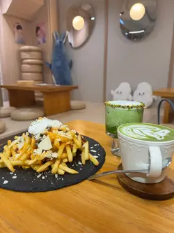 放假同班friend想揾个舒服嘅地方gathering.今次就揾到西环呢间Cafe.首先讲吓我朋友叫咗啲乜嘢食先:香浓日式咖喱猪扒饭 (HK$78)朋友俾咗一件猪扒我试.猪扒厚身, 外脆内嫩.不过咖喱就冇咩特别, 系普通嘅日式咖喱.松叶蟹·蟹籽明太子天使面 (HK$108)慢煮加拿大猪鞍 (HK$128)配咗甜渍苹果莎莎同埋薯菜.朋友话个猪鞍食落唔会韧.香煎比目鱼扒伴西式薯菜 (HK$118)和风烤鸡扒定食 (HK$88)呢个定食劲丰富呀.鸡扒都烤得好香, 肉质嫩滑, 好好食.配菜都样样味道唔错.开心果特调 (HK$56)开心果味超浓, 味道咸咸地咁.里面仲有啲软滑嘅豆腐花, 饮落口感都几特别. 不过我觉得试一次就够啦.烟肉芝士薯条 (HK$78)芝士酱多到夸张, 烟肉都好香脆.我觉得呢个系必试!呢个系期间限定嘅雪の豆腐巴斯克芝士蛋糕 (HK$62)好浓豆腐味, 配埋啲脆脆都几好食嘅.但系食到尾段我就觉得有啲干.E FOR EGG芝士奶盖招牌窝夫 (HK$88)依个窝夫打卡一流.系食到有芝士奶盖味嘅.夹心似云呢拿味雪米糍.唔系唔好食嘅, 不过我觉得都系试一次就够.整体嚟讲, 环境几好, 坐得好舒服嘅.系gathering唔错嘅选择.…查看更多