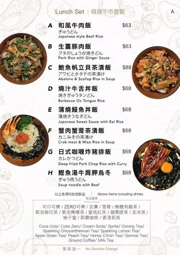 火锅+烧肉放题 / 鲍鱼帆立贝茶渍饭 / 牛颈脊寿喜烧定食 / 蒲烧鳗鱼丼饭 / 封门柳烧肉定食