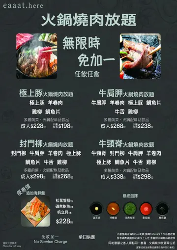 无限时无加一烧肉火锅店——eaaat.here居然可以无限时,价钱合理,地方又好坐,现在真的好少选择,所以今次在eaaat.here享受到正价比高的一餐,当然要介绍一下🍽️环境楼底高,枱与枱之间不太狭窄,有足够空间,与三五知己无限时谈天说地,但略嫌油烟过多。🍽️食物今次点了$238套餐,肉质虽然普通,出乎意料地,其他食品尚算不错,蔬菜菇类都新鲜,都适合火锅与烧烤,另有不同饮品选择,以此价钱来说相当满足。🍽️服务店员友善,都好勤帮客人换烧烤网,尽量满足到客人的要求。食物:⭐️⭐️⭐️环境:⭐️⭐️⭐️⭐️⭐️服务:⭐️⭐️⭐️⭐️⭐️卫生:⭐️⭐️⭐️⭐️⭐️价钱:⭐️⭐️⭐️⭐️⭐️****** ****** ****** ****** ****** ****** ******Eaaat.here (大角咀)大角咀嘉善街18号利奥坊地下G704号舖****** ****** ****** ****** ****** ****** ******#无限时 #大角咀 #大角咀美食 #香港美食 #hkfood #foodiejpt #hkfoodie #hkfoodies #hkig #吃货#travel #日本料理 #烧肉 #火锅 …查看更多