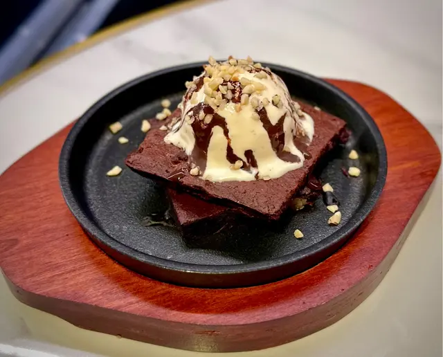 朋友建議來到位於佐敦一間素食煮意餐廳食晚餐,因餐廳每晚的7點至9點半,都會請來不同的註場歌手自彈自唱,在這裡用餐相當好氣氛。同時,餐廳會巧妙地選用各種的食材打造有不同效果的多國菜,令我對素食煮意更添了一份興趣。🎸👭🍽️☺️✨ Chrysanthemum ($50),朋友比較注重養生,就選了菊花茶,整壺菊花茶都選用大大朵的菊花,沖泡出來充滿花香,同時也是清熱良品。🌼🫖✨ With or without you ($65),是一杯很有特色的朱古力飲品,而且都幾重身,朱古力奶、朱古力醬、杏仁片、奶油,再加上濃度高的黑朱古力,打造成一杯金沙特飲,真是令人感覺很回味。🍫🍹✨ Salmon fish tatar 3.0($88),濃滑軟身的牛油果上舖了一層用蒟弱製的三文魚,加上了車厘茄、青瓜、橄欖等新鮮的蔬果,以酸甜黑醋汁作為點,是很開胃的前菜。🥑🐟✨ Dance Monkey($130),美式的竹碳漢堡見得多,但夾著候頭菇都是第一次見,竹碳漢堡夾著生菜、厚身多汁候頭菇,菇汁超級濃味,質感很軟熟,還有一塊素肉扒,味道似仿豬扒,這個配搭很新穎。漢堡長身似是一隻拖鞋,所以也可以稱為「拖鞋包」。周邊的薯角是用新鮮薯仔製成,整份漢堡都幾飽肚。🍔🍄‍🟫✨ Vegan Stirfry($98),大闊佬椰菜花飯,以粒粒椰菜花代替飯,再加上蛋白、素肉碎、香菇、洋蔥、紫洋蔥,加了一些泰式的青椒一齊炒,令椰菜花入口更香口,帶有辛辣的味道。吃起上來口感似泰式生菜包的餡料,好惹味。🥦🌶️🔥✨ Set fire to the rain sizzling brownie($88),布朗尼放在鐵板上,焗至熱辣辣,朱古力都很重,又唔會好甜,上面放的冰凍的雲尼拿雪糕,那種冷熱交融的感覺,真是令人回味。🍰🍫🍨✨ Baked cheesecake($58),餐廳自家製的巴斯克蛋糕不論是奶味和芝士味道都夠哂濃滑,每一口都很順滑,食完再食返片無花果清一下口腔的濃味,為今餐劃上完美的句號,真是很滿足。🧀🍰🤩查看更多