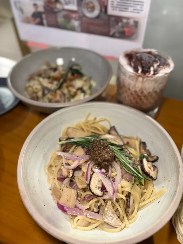 牛肝菌湯湯底使用新鮮的牛肝菌,味道醇厚,帶有淡淡的泥土芬芳,湯的質地絲滑,每一口都令人滿足,並且搭配的香草點綴,讓整道湯品的風味更加豐富,既是開胃的前菜😀烏卒卒松露意大利粉意大利粉的口感彈牙,與松露的香氣相互輝映,讓人一試成主顧。黑松露的濃郁風味在每一口中綻放,讓整道菜品充滿層次感。當搭配上細緻的橄欖油與香料時😀闊佬炒椰菜花飯一道充滿健康感的選擇。椰菜花被切碎後與米飯混合,形成了獨特的顆粒感,口感清新。這道菜的調味恰到好處,既保留了蔬菜的原汁原味,又增添了香氣。每一口飯都透露出健康與美味的完美平衡,讓人感受到素食的簡單與純粹☺️檸一檸芝士蛋糕蛋糕的質地輕盈,檸檬的清新香氣讓人精神為之一振。每一口都是對味蕾的極致享受,既不過於甜膩,卻又能滿足甜品愛好者的渴望😀布朗尼濃郁的巧克力味道在口中融化,搭配上柔軟的質地,讓人每一口都感到幸福。這道布朗尼不僅是巧克力愛好者的夢想😀每一道菜都充滿了驚喜與美味。合理的價格和高品質的料理,使這裡成為韓式料。創意十足又美味的素食好去處🤩🥳@eagle_sparrow_music_cafe, mention Eagle & Sparrow Music Cafe查看更多
