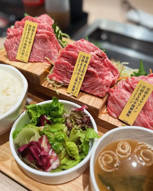 📍Eat燒肉😍將軍澳超高質素和牛燒肉👍🏻~宮崎A5和牛😍A5和牛油脂分布平均😛入口即溶😘肉質非常細嫩❤️👍🏻份量仲要非常多❤️三舊水可以試齊三款部位包括肩胛肉眼心😘上等牛肩胛🤪肩胛腋板👍🏻每款都有好多塊😍~宮崎A4和牛西冷❤️和牛西冷切得非常厚😍同樣都係入口即溶😛燒落去更加肥美😘油花非常靚😘👍🏻配上自家製BBQ醬汁食😛真係食到停唔到口❤️好食過出面大集團嗰啲燒肉汁好多👍🏻~跟餐沙律菜非常新鮮😘醬汁調配得好好👍🏻湯香濃又好飲😍~順帶一提😛餐廳環境靚😍食物質素高🥳店員服務態度好👍下次一定再嚟食😎📍EaT燒肉 (將軍澳)將軍澳坑口重華路8號東港城1樓101號舖…查看更多