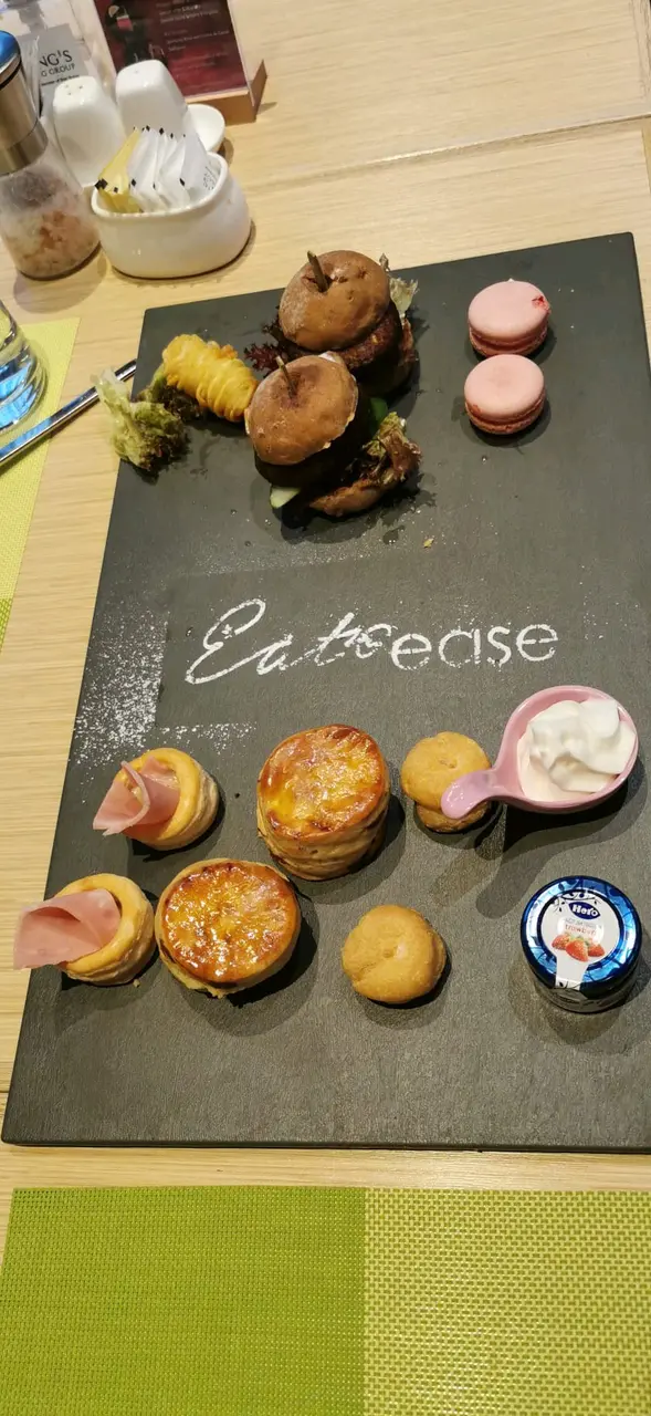 位於葵湧旭逸酒店一樓的Eat@ease是一家以型格工業風為主題的餐廳。進入餐廳,你會被高樓底和開揚的環境所吸引,感到舒適愜意。 他們提供精緻的下午茶套餐,包括迷你竹炭漢堡、Parma Ham tart、炸蟹鉗、英式鬆餅和馬卡龍,每種點心都有兩份。這些點心的味道都相當美味,特別推薦迷你竹炭漢堡和炸蟹鉗,絕對讓人驚艷。 唯一的遺憾是,兩人份量有點少,對於胃口大的人可能不夠飽足。建議餐廳增加份量,以滿足顧客的需求。 總括來說,Eat@ease的環境寧靜,讓人感到放鬆。雖然兩人份量稍嫌不足,但食物的質量和味道都很出色。如果你想要一個舒適的地方享受精緻的下午茶,這裡是一個不錯的選擇。查看更多