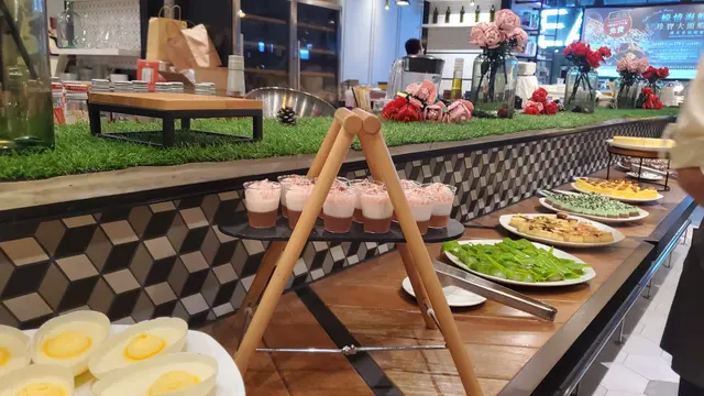 這次的法越主題半自助晚餐帶給我不錯的用餐體驗。主菜方面,點選的烤豬仔骨和鳕魚柳搭配車打芝士,口感相當不錯。配搭的醬汁有新鮮感,跟碟汁醬好味唔多夠,好彩餐廳廚師幫忙加refill汁。自助餐區,提供幾款冷盤海鮮,其中翡翠螺、蝦和蜆肉新鮮香甜。雖然盤子不大,放海鮮數量不是很多,但server不時補充,還是很可以的 !!OK。唯一麻麻的是有些青口打不開,希望可以改進這點。中西湯各有熱住但入口見凍,忌亷汤味道係好夠,熱會更好味。沙律和新鮮水果。沙律新鮮、口感清爽,而哈蜜瓜菠蘿特別甜。服務員笑容可掬服務不時換碟。整體就餐環境非常舒適溫馨,燈光柔和,讓人感到放鬆和愉悅。餐廳的客人不多,餐廳環境帶工業風。這次的法越主題半自助晚打折後餐價錢實惠,食品服務大致滿意,下次會再去試試周末生蠔自助晚餐 查看更多