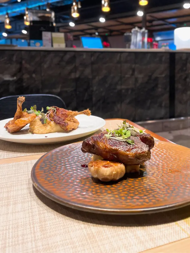 🎪 Eat@ease (葵涌)葵涌梨木道圳邊街15-19號旭逸酒店1樓荃灣旭逸酒店🏨半自助晚餐😋同朋友黎吃個開心晚餐,慰勞下自己☺️見到呢度住宿大概五、六百元一晚,抵玩Staycation😗餐廳裝潢以工業風為主,非常有空間感,優點係可以慢慢享受整頓晚餐🥣店員服務態度親切,用餐經驗愉快☺️半助餐除左主食🥣自助吧枱有無限量供應海鮮、各式法越前菜及沙律,如法式鵝肝醬多士、越式單骨牛油雞翼、越式扎肉沙律、沙律等,還有甜品及自助飲品吧🤍最重要係可以慢慢來、慢慢食💓🌟香煎佐賀A4黑毛和牛肉眼扒 $468佐賀和牛質素非常高,稱得上是日本和牛最高級牛肉品牌🤤今次肉眼扒有250g,份量相當不錯👍 五成熟,入口脂肪均勻細膩,牛味濃郁🥹正‼️配埋燒蒜🧄薯蓉,簡單而岀色🫶🏻🌟法式油封野鴨腿 $278法國菜烹煮最講究🤤用上傳統法式油封手法即用油把肉蓋住黎烹調,數小時低溫慢煮而成🦆外皮超級酥脆,鴨肉肉質柔軟,嫩到可以脫骨,味道帶有鹹香🤤非常惹味👍查看更多