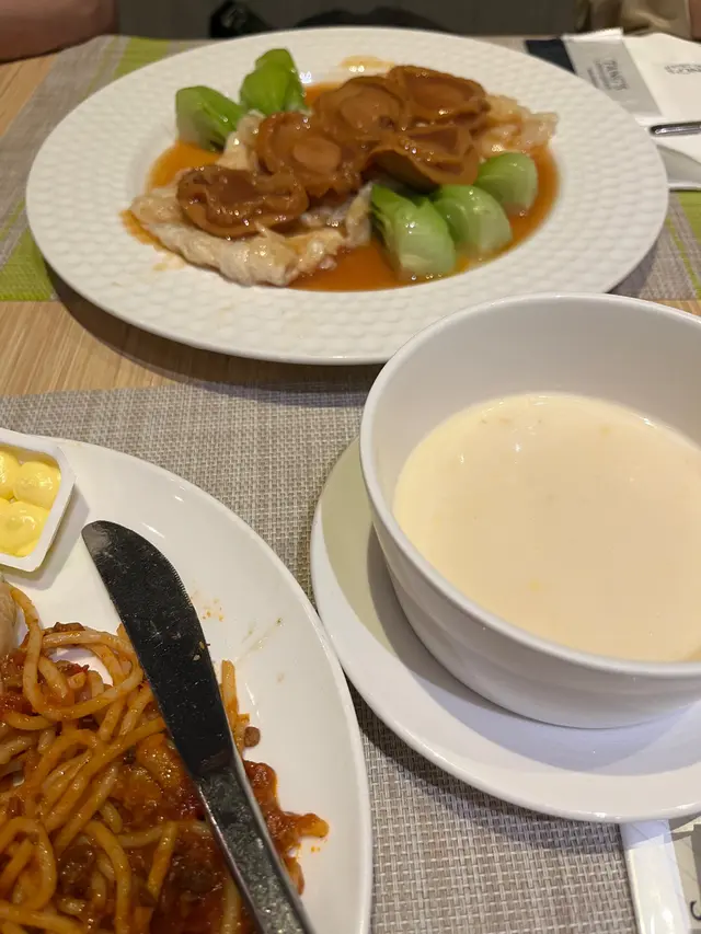 間餐廳好少人幫襯,假期都係得幾台客,絕對有原因。人均200幾蚊既午餐,完全唔值。比目魚主餐個醬鹹到呢,而且加埋薯蓉等配菜賣相完全唔討好。外面半自助餐野食款式少之又少,而且補給得慢。一杯杯既甜品有膠味,好難食。最離譜係佢哋收拾檯面既菜渣盤直接放係自助餐bar隔離,非常嘔心。🤢每次出去都會見到其他檯既食物殘渣…..快餐店都唔會咁樣,呢度算咩酒店……店員得一個係有啲禮貌…..整體黎講就係千期唔好黎食。查看更多