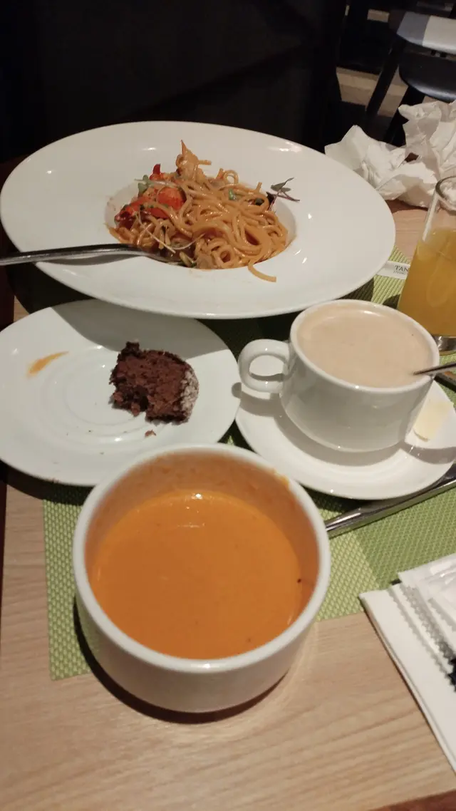 本身無期望,咁先唔會太失望,但求間餐廳企理食餐lunch 就算小朋友點左肉醬意粉,差過大渣樂,我老公點左意大利飯,入餐凍既,原來我點嗰份先係極品,從未試過連碗湯粉都食唔落口,札肉比碗死咸怪味湯底攪到好難食,最後我份主餐成份無食過,所謂半自助餐。。。。預左選擇唔會多,一分錢一分貨,但我只飲左兩碗湯,一杯咖啡同一杯杯裝牛奶公司雪糕,其他嘢見到賣相都唔開胃蛋糕個樣嚇死你,冷凍前菜衰過菜樓碟前菜, 橙汁似溝淡左既藥水。 其實地點偏成咁,好心就做好啲餐飲幫補吓收入啦~ 難食成咁,可以好快入群組查看更多