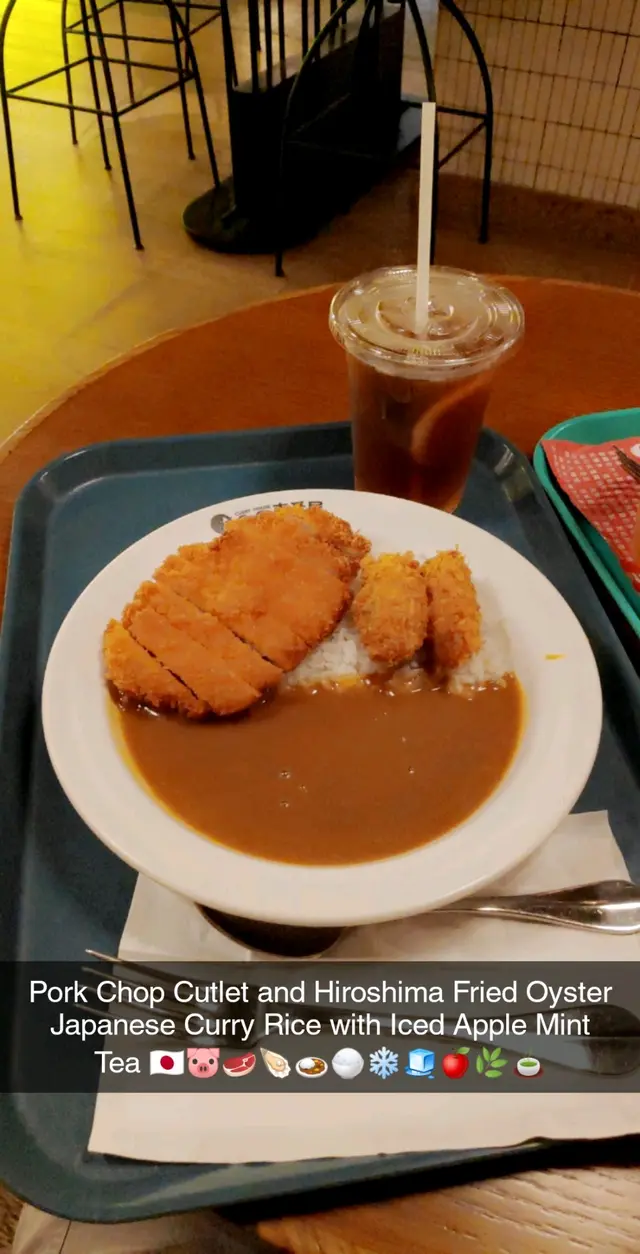 Pork Chop Cutlet and Hiroshima Fried Oyster Japanese Curry Rice with Iced Apple Mint Tea 🇯🇵🐷🇯🇵🦪🍛🍚❄️🧊🍎🌿🍵