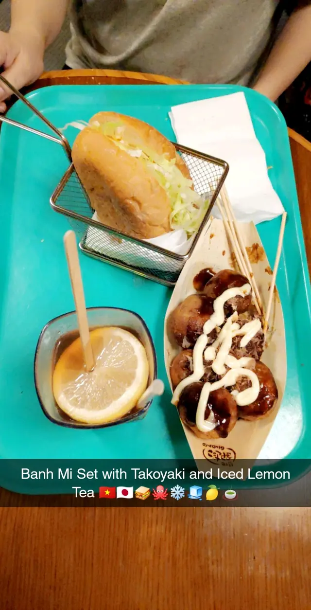 Banh Mi Set with Takoyaki and Iced Lemon Tea 🇭🇰🇯🇵🥪🐙❄️🧊🍋🍵