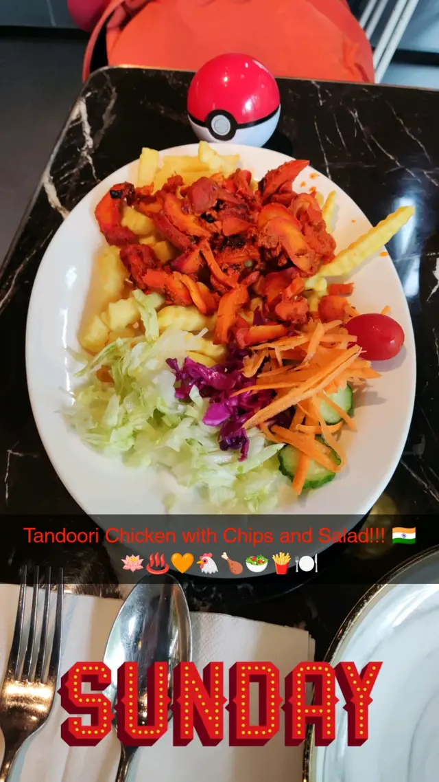 Tandoori Chicken with Chips and Salad!!! 🇮🇳🪷♨️🧡🐔🍗🥗🍟🍽️