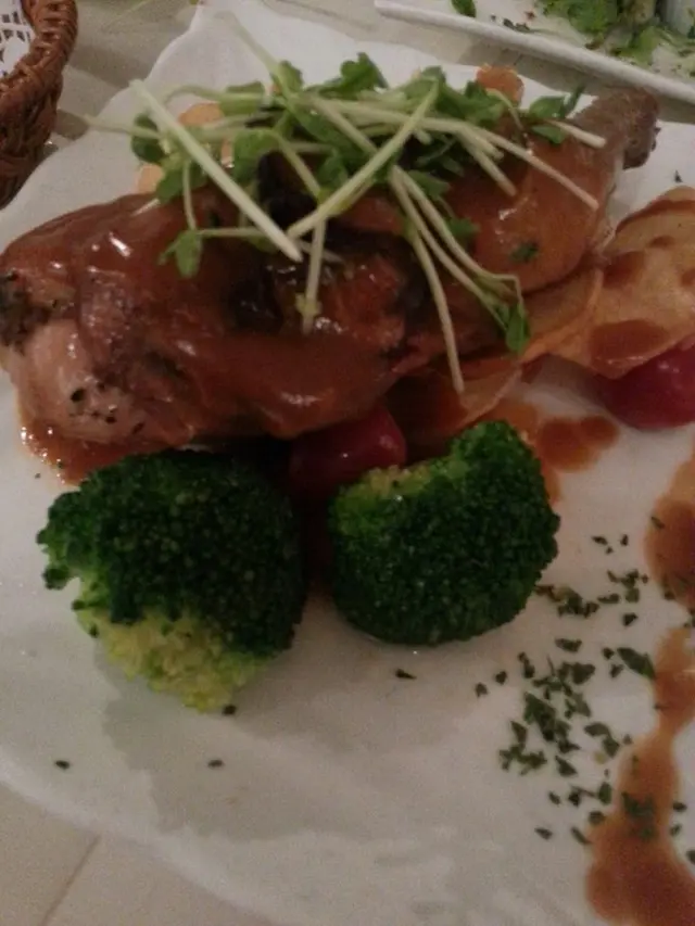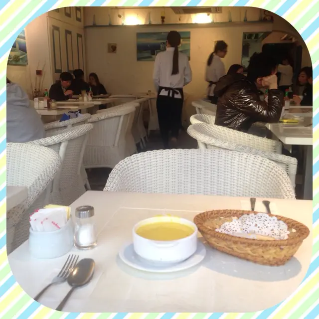 我們是被餐廳藍白色的裝潢吸引前來的午飯至下午餐時段都很小人四十多元的午餐實在便宜 還跟餐湯 餐包及飲品今今天的餐湯是忌廉磨茹湯 可是湯有點過晞沒有忌廉那種杰口蒜蓉包還可以到了main course我點了茄汁雞扒焗長通粉雞肉有點"鞋" 長通粉過硬而朋友點的燒汁雞扒意粉 她說意粉沒有味 雞扒不過不失我們餐飲要了兩杯柑桔蜜可惜柑桔蜜裏卻沒有柑桔而且杯子不知為何經常黏着桌面 每次拿起都很費力 又害怕會打翻 下次不會再光顧查看更多