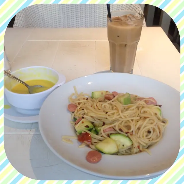 每天都是亞士厘道午餐,有時候想坐得舒適一點,都會選擇到同事們之間稱之為小白屋的ECF Cafe。之所以會稱之為小白屋是整間Cafe都以希臘Santorini為裝修主題的。白色的牆,木桌藤椅,加上藍色的畫,環境是舒適的。下午茶時候,$46一個意粉連飲品,加$5可蒜蓉包和餐湯。這次我點了香辣蒜茸炒翠肉瓜配什肉腸意粉。今天是南瓜湯,很稠很creamy但味道有點淡。蒜茸包很脆,而且牛油味挺香。不過如果能多點蒜茸的話會更好。炒意粉很香,而且意粉軟硬剛好,炒得很乾身很惹味。不同種類的腸配上翠肉瓜,感覺清新一點,剛好中和一下creamy的炒意粉。飲品點了奶茶,不過這次的奶茶很淡很淡,完全沒有茶味像奶水一般,稍為失色。整體來說在這個地段這個環境,以$50左右能有一個夠飽肚的下午茶,算是很合理了。查看更多