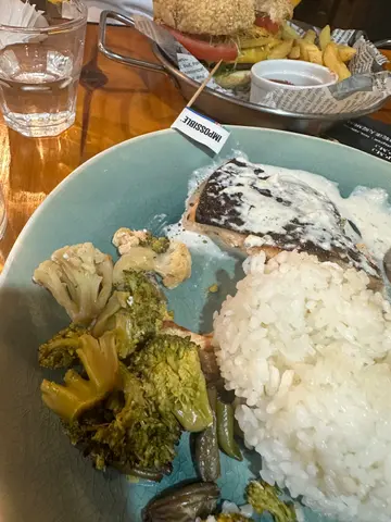 好日都唔写食评,但今次真系要报告一下。本身都无乜特别期望,叫左个三文鱼饭升级套餐。个饭好快就黎左,三文鱼系正常既,但伴饭既西兰花同椰菜花系泛黄色既!谂住佢摆得耐都系样衰je, 顶你咬落去酸既, 仲衰过无味……个卖相仲要好似𩠌尾咁样样,咁都够姜上碟,不如skip左佢当无配菜算吧啦。个店员反映,佢话,系今日煮架㖞…..到差不多食完准备埋单,侍应突然拎返升级套餐既沙律同汤+餐包黎,争d忘记左佢…..d次序错哂🤪…………………………………🙄🙄