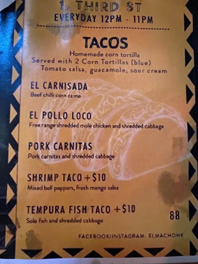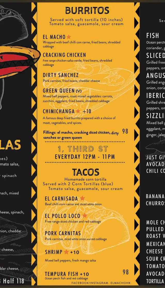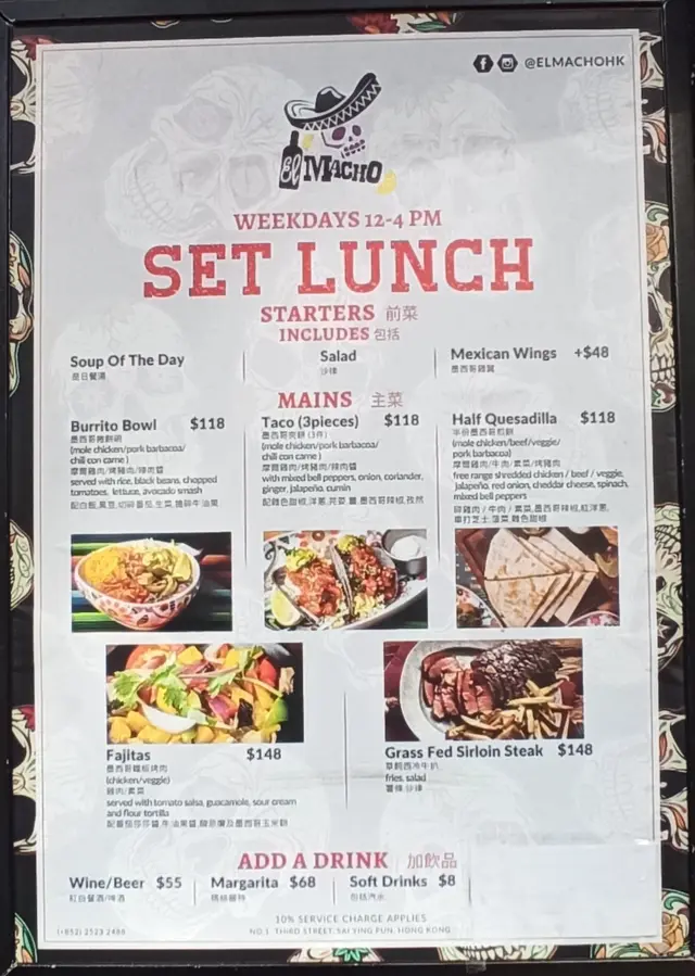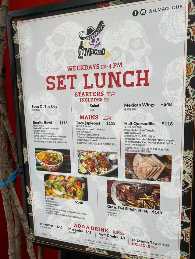 El Macho (西环) 网上订位即赚Rice Dollars 网址: https://s.openrice.com/QrLS0v5O900 地址: 香港西環西營盤第三街1號地舖 电话: +852 25232488