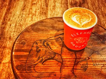 听说金钟开左间elephant grounds..系lunch time 既时间去试下杯咖啡.哗.....好多人排队呀...一定等好耐.但事实...都唔系等左好耐...而且咖啡师傅好快手.比想像中好,今次order左外卖 cappuccino,好香咖啡豆味.好独特.应该系有特别既咖啡豆做!…查看更多