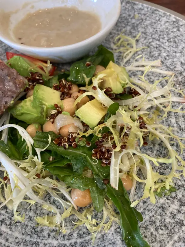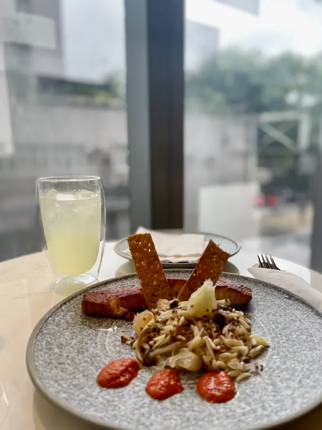 偶然經過永興街一個 服務式住宅地舖,是一間有型有格的西餐廳, 樓底很高 ,簡約風格, 還有二樓雅座, 全是落地玻璃, 外面街景及少少維園景, 畫面很舒服很悠閒 。今日就同閨蜜一齊踏上這個樓梯 ,試一試這裏的型格午餐, 套餐包括一個營養豐富的主食, 包一杯50元以下的飲品 ,如果超過就要補差價。閨蜜之間總會分享食物, 點了一個香煎三文魚藜麥配柚子沙律 ,一杯香濃朱古力 ,另一個主食很特別, 牛扒煎鍋配高纖食材 ,有牛油果 ,車厘茄, 沙律菜 ,鷹嘴豆 ,藜麥 青咖哩醬汁, 還有一個很漂亮的太陽蛋 ,配一杯香濃的mocha 。今日 午餐很健康, 也很美味。 三文魚煎得香但一點也不柴 ,藜麥柚子沙律加米型通粉相伴, 很和諧 ,份量也很適中 。牛扒煎得香香的 ,肉味濃厚 ,肉質香嫩, 配菜更加出色 ,每樣都新鮮, 兩杯飲品拉花漂亮濃香, 稍有不足就是不夠熱, 但在炎熱的天氣也沒有什麼關係。 兩個精美的午餐 265元 ,坐在涼浸浸的樓上雅座 ,邊聊天邊享受美食, 確是賞心樂事。😘😘…查看更多
