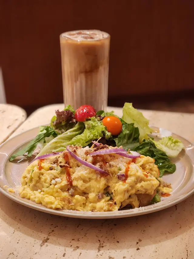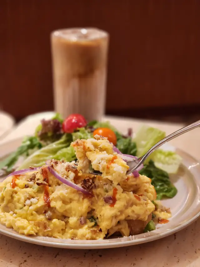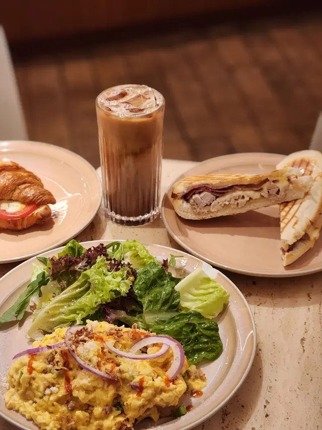 牛油果碎蛋貝果配沙律+檸檬蛋糕+Flat White