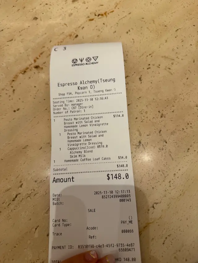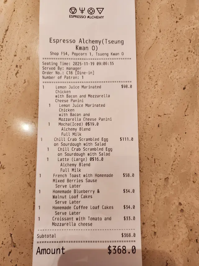 Espresso Alchemy (PopCorn 1 ) (将军澳) 网址: https://s.openrice.com/QrLS0t9WC00 地址: 香港將軍澳唐賢街9號PopCorn 1 1樓F54號舖 电话: +852 26181632