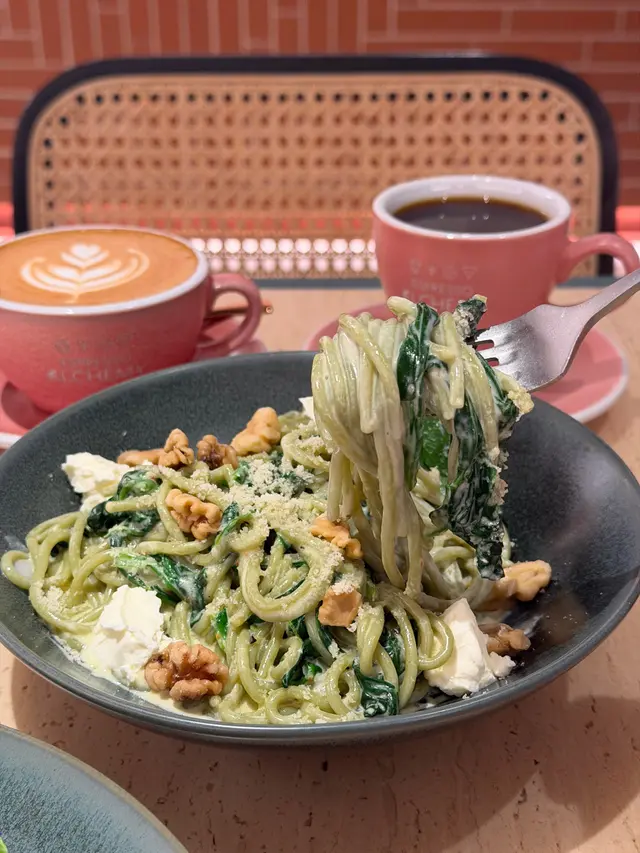 假期同朋友一齊嚟咗呢間喺尖沙咀嘅咖啡店兼餐廳食午餐同埋飲番杯咖啡☕️😆 $40 Long Black 大大杯夠熱夠香夠滑 ☕️$45 Cappuccino 都係大大杯熱辣辣,夠濃郁夠滑又有奶香☕️🤣$109「紅咖哩鴨胸肉忌廉長通粉 Duck Breast Penne in Red Curry Cream Sauce」:紅咖哩汁煮得幾 creamy 有少少辣,好味🤣,鴨胸肉切成小粒好易入口🤣,Penne 煮得軟腍腍容易消化👍$95「青醬雞胸沙律配檸檬醋醬 Pesto Marinated Chicken Breast with Salad and Homemade Lemon Vinaigrette Dressing 🥗」:雞胸夠晒大好多肉可能呢隻雞生前好大食所以變得非常肥大,而雞胸肉質非常軟熟,真係幾好味喎🤣;仲有新鮮嘅沙律菜同新鮮蕃茄,再加埋啲 Sun Dried Tomatoes 咁就更加好味🤩$34「自家製藍莓核桃蛋糕 Homemade Loaf Cake - Blueberry & Walnut」:見到又食到有啲藍莓🫐 同埋有啲核桃,味道甜甜哋不過又唔算好甜🤩…查看更多
