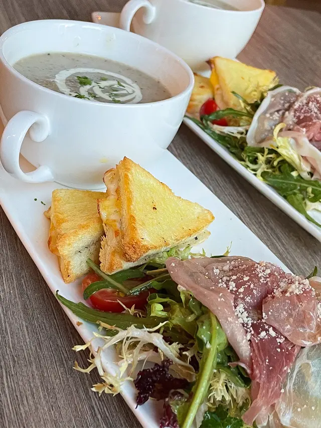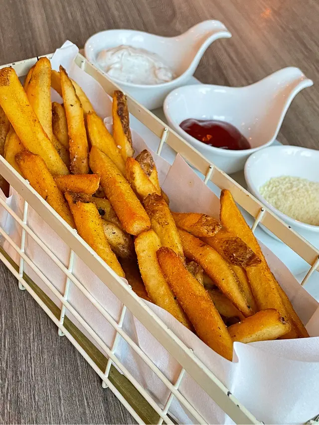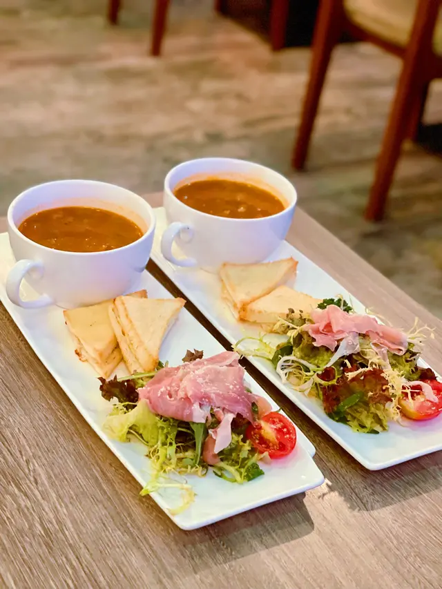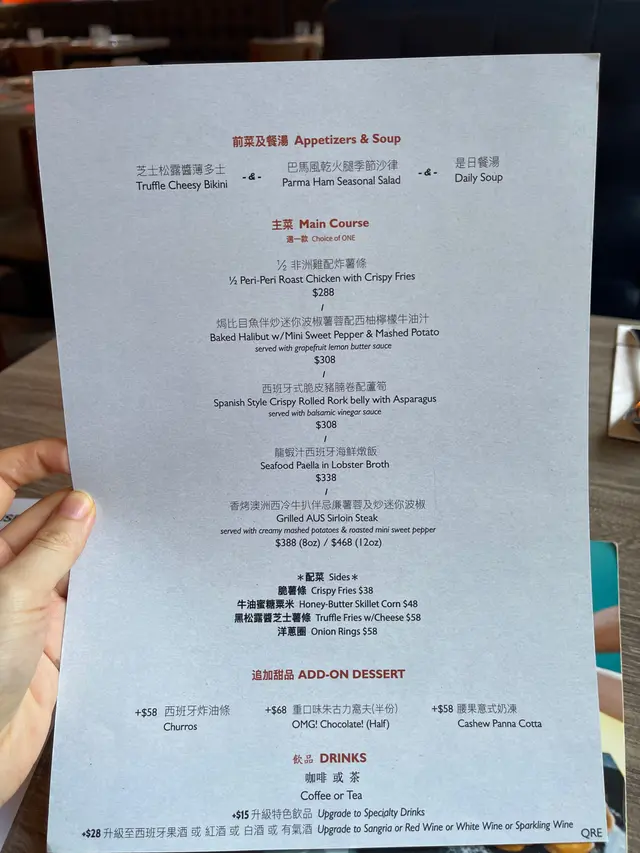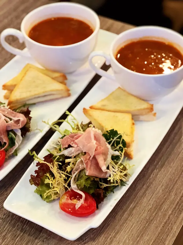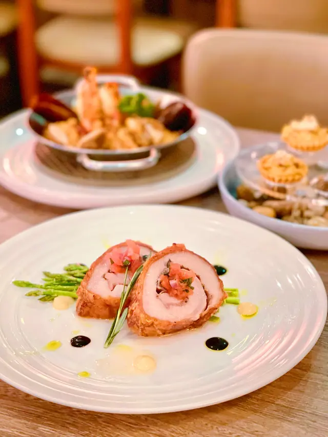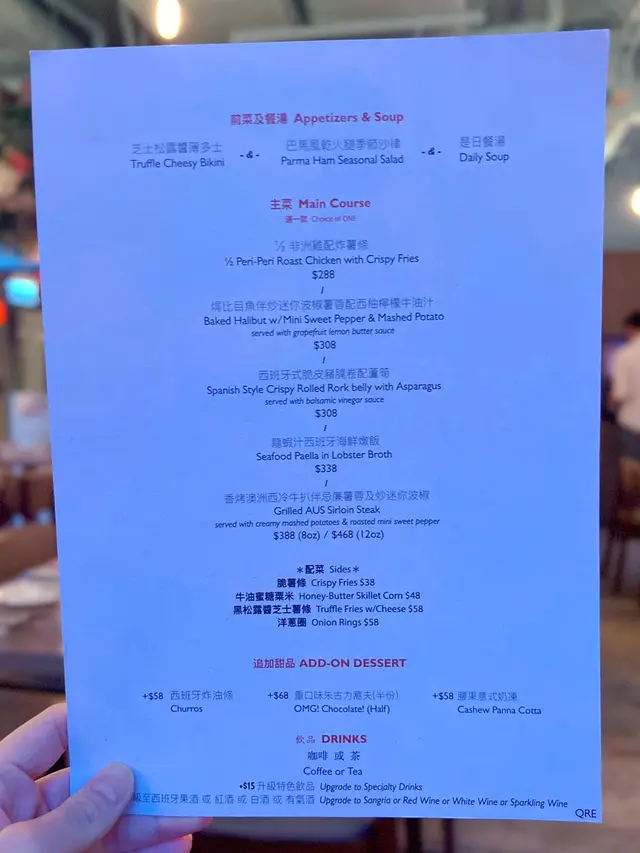 今晚在灣仔吃飯,這家餐廳以前經常光顧,倒有一段時間沒有來了。景觀不錯點了一份晚市套餐,包括多士、餐飲、沙律、飲品和主菜。⭐️芝士松露醬薄多士多士的外層酥脆,內裡柔軟,搭配上芝士和松露醬,是一個令人愉悅的開胃菜。⭐️巴馬風乾火腿季節沙律西班牙火腿為整道菜增添了豐富的風味,火腿不死鹹,好吃。⭐️南瓜湯南瓜湯濃郁滑順,帶有南瓜的天然甜味和香氣。⭐️西班牙式脆皮豬腩卷配蘆筍這道西班牙式脆皮豬腩卷配蘆筍。豬腩卷稍硬了一些,反而配菜不俗。⭐️黑松露薯條黑松露薯條是招牌小食,薯條炸得酥脆金黃,搭配上黑松露的香氣,帶來了一種獨特的味道體驗。…查看更多