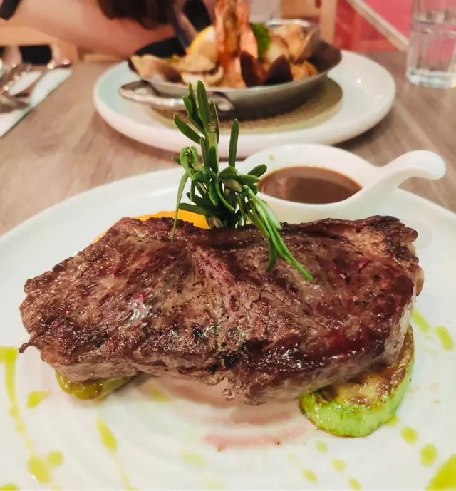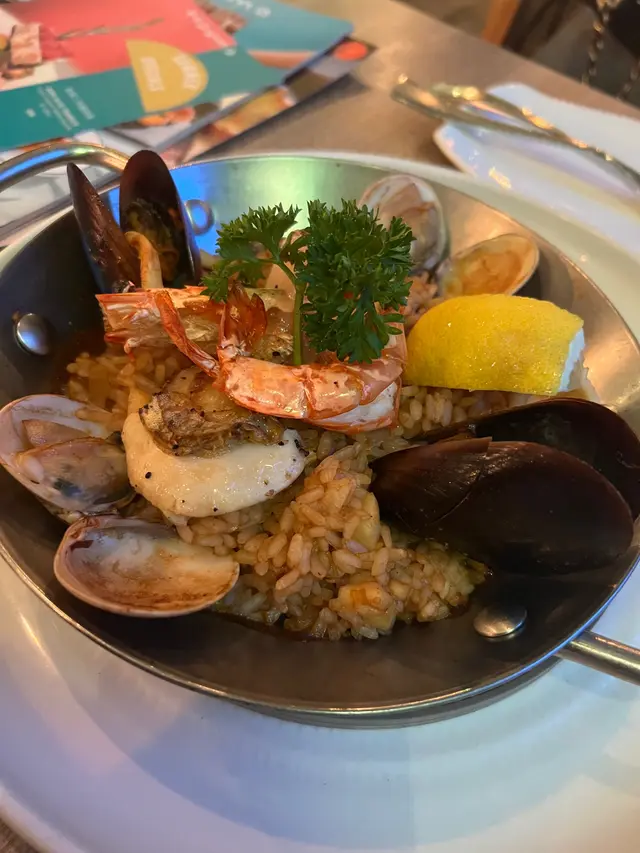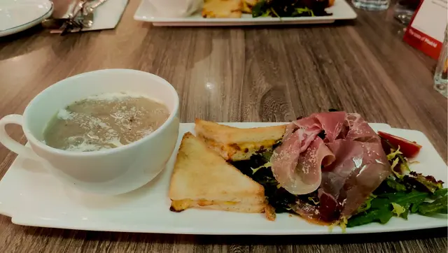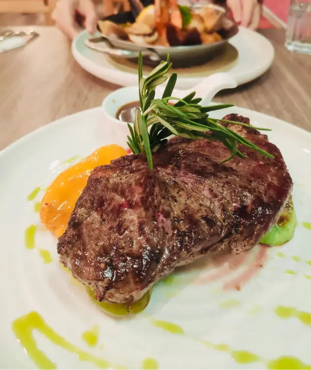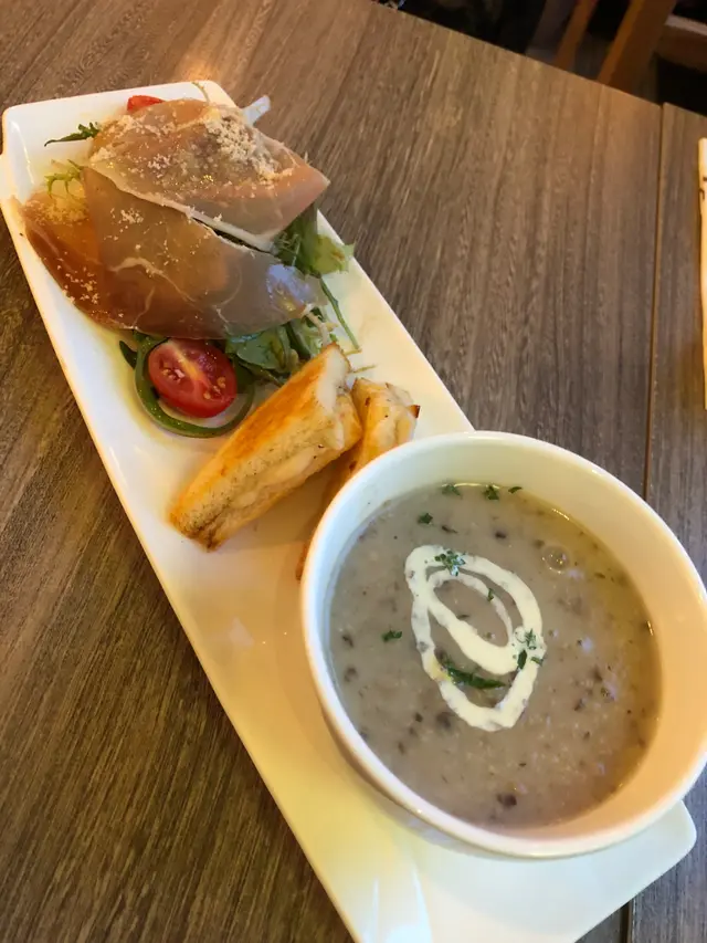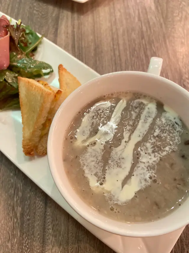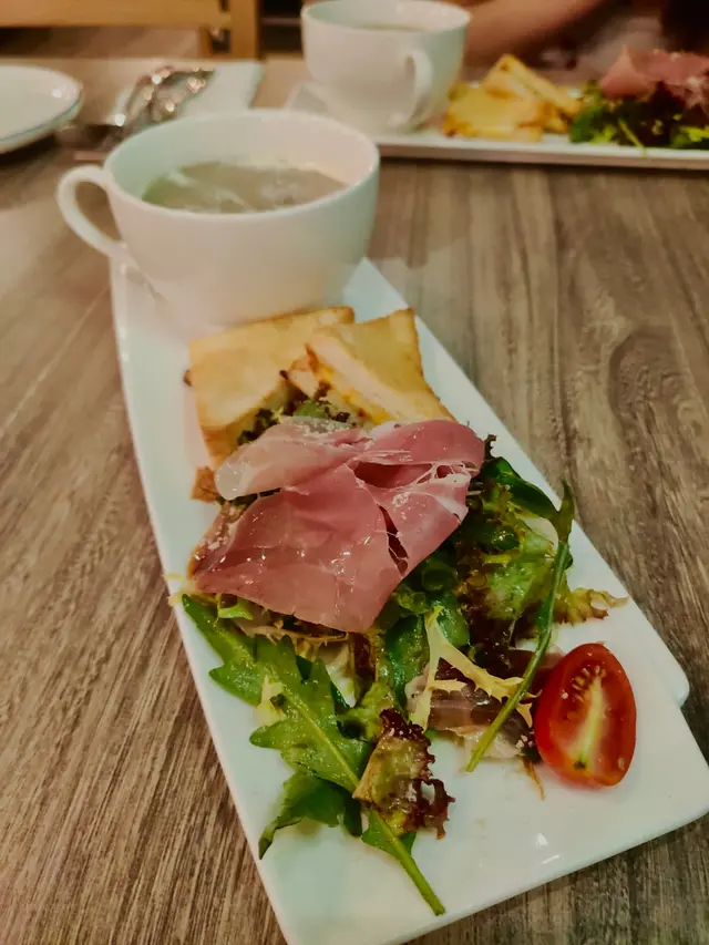 今晚在灣仔吃飯,這家餐廳以前經常光顧,倒有一段時間沒有來了。景觀不錯點了一份晚市套餐,包括多士、餐飲、沙律、飲品和主菜。⭐️芝士松露醬薄多士多士的外層酥脆,內裡柔軟,搭配上芝士和松露醬,是一個令人愉悅的開胃菜。⭐️巴馬風乾火腿季節沙律西班牙火腿為整道菜增添了豐富的風味,火腿不死鹹,好吃。⭐️南瓜湯南瓜湯濃郁滑順,帶有南瓜的天然甜味和香氣。⭐️西班牙式脆皮豬腩卷配蘆筍這道西班牙式脆皮豬腩卷配蘆筍。豬腩卷稍硬了一些,反而配菜不俗。⭐️黑松露薯條黑松露薯條是招牌小食,薯條炸得酥脆金黃,搭配上黑松露的香氣,帶來了一種獨特的味道體驗。…查看更多