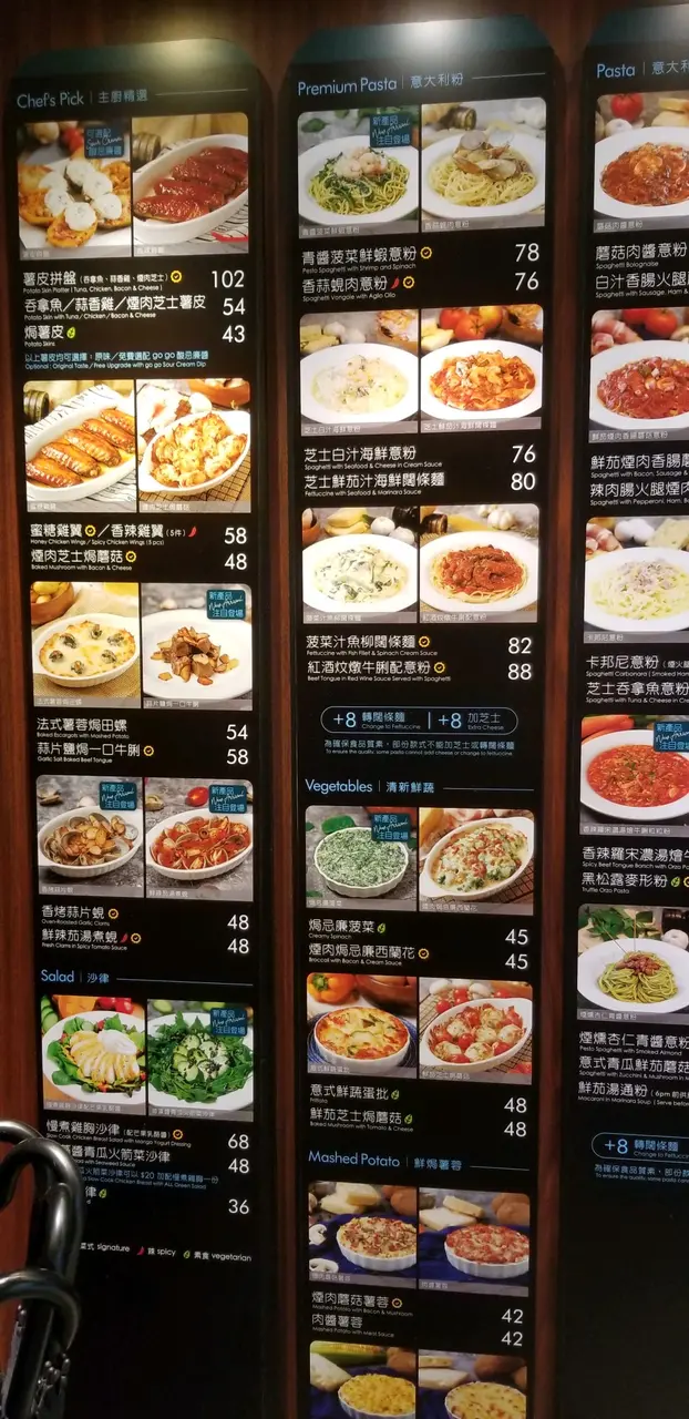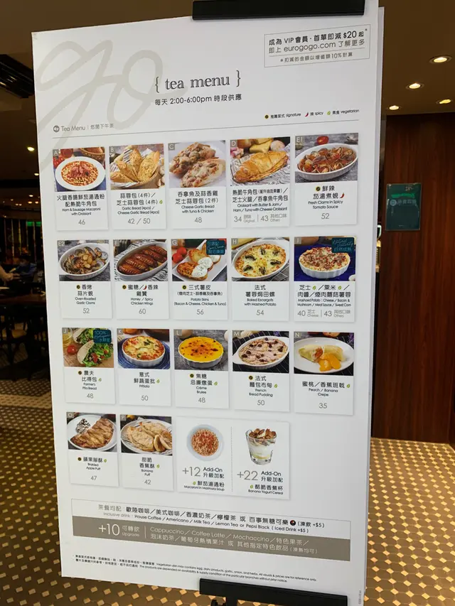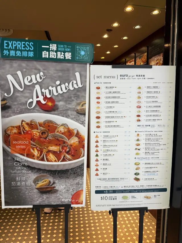因为好耐冇食意粉,所以就去元朗广场,选择食Euro Go Go. 午餐时间都有很多套餐选择,我就想食芝士白汁海鲜意粉($73)配蒜蓉包,饮品要咗冻蜜桃茶(+$8),老公想食pizza,叫咗半份千岛海鲜pizza($68)配沙律,饮品要咗冻奶茶(+$5),总共$164。首先嚟咗冻饮及配菜,我嘅蜜桃茶入边有三片蜜桃,呢个我每次嚟都会饮,觉得几好饮。估唔到蒜蓉包都好软熟,我仲怕佢系会好硬添。个芝士白汁海鲜意粉有原只蚬,虾及带子。个汁捞埋意粉好够味,因为我系钟意食浓味嘅好怕食到淡而无味或者啲意粉唔够汁。而Pizza我都食咗一件,佢好特别系配上原只蚬,另外有虾及菠萝。我觉得味道还可以,但系我老公就嫌佢个Pizza底比较厚,佢话以前系薄底,比较好味。我平时通常都会叫蜜糖鸡翼,但因为今次叫咗两个主菜已经食唔落,唯有留返下次再食😁…查看更多