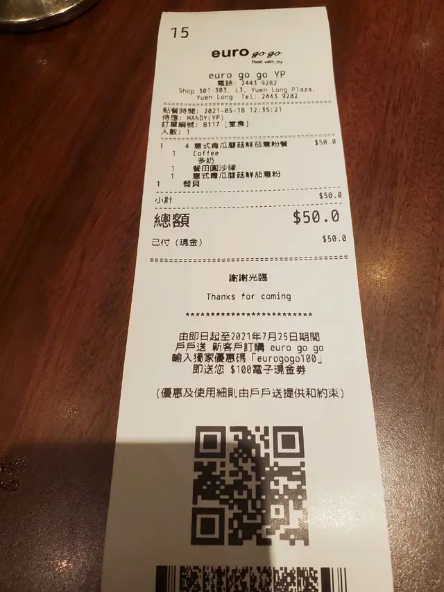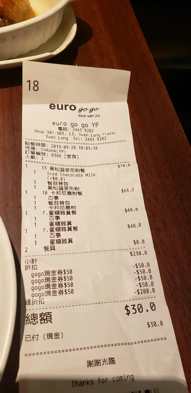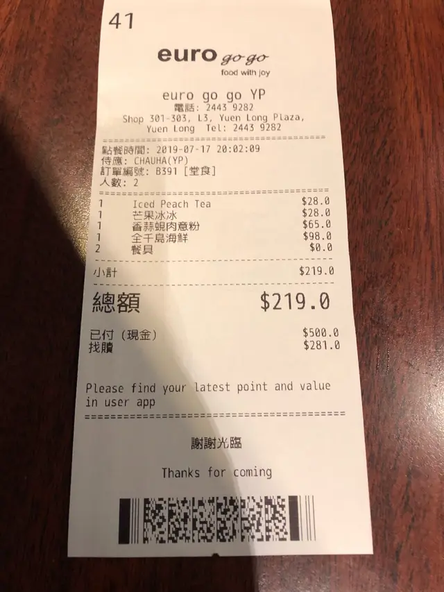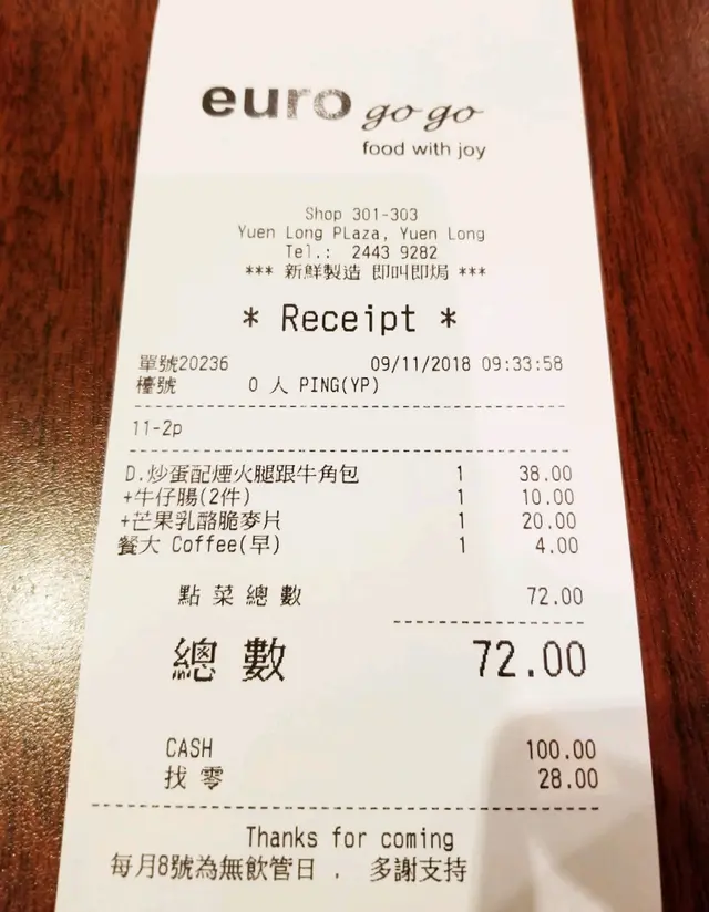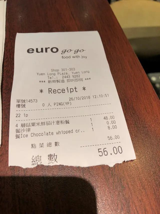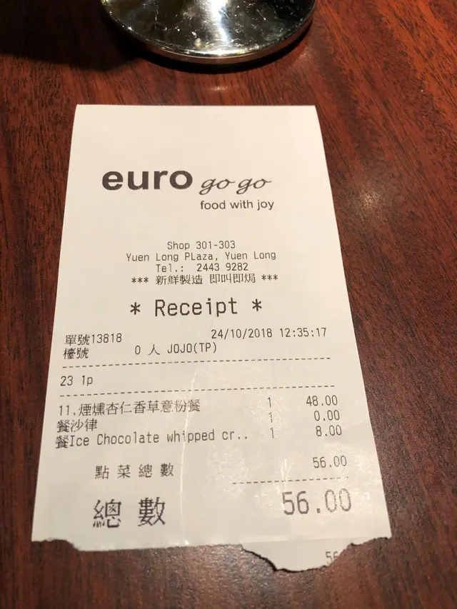 euro go go (元朗) 网址: https://s.openrice.com/QrLS0gNm100 地址: 香港元朗青山公路 - 元朗段249-251號元朗廣場3樓301-303號舖 电话: +852 24439282