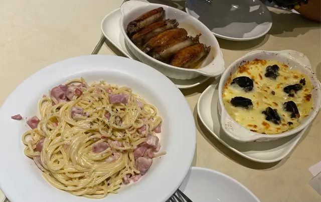 好耐無食,係屯市諗住簡簡單食個西餐,簡左euro gogo,諗住無死啦⋯叫左出左無耐既「青醬菠菜大蝦意粉」,個賣相已經唔討好,望落好乾,聞落都唔香,啲菠菜好咸,咸到食唔落⋯⋯⋯ 浪費了😭😭😭 啲蝦都ok既,正正常常。芝士焗西蘭花無味的⋯🥲雞翼入面都係無味,得出面啲蜜糖有甜味⋯ 🥲連之前由細到大食開嘅焗菠菜魚柳闊條麵都無乜味,啲菠菜又黃黃黑黑咁,啲闊條麵好淋無口感。(嬲得濟無影相)真係好失望,同幾年前食差好遠😢😢😢…查看更多