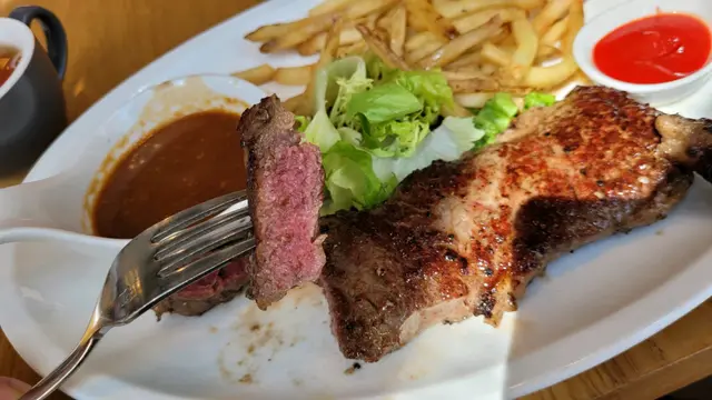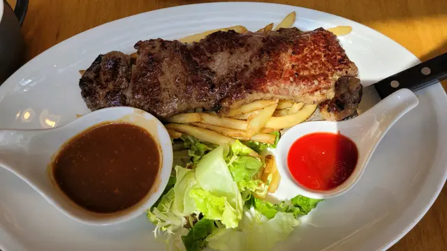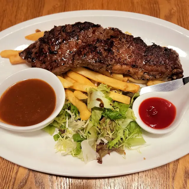 朋友介紹來呢度食,看到食評有點担心。抱住試吓的心態,親身體驗係咪咁差先。不論男、女的淺啡色衫年輕一些的侍應、態度都非常好,好樂意幫忙。我原本坐的位置剛巧有一大班人一齊,比較嘈吵,同個男仔講,他立即幫我轉位。點餐時,大致都ok , 只是覺得綠色衫的侍應有點不耐煩,朋友問多句,都有點唔想答你咁,耐性有待改善。但後來埋單傾計,態度多ok 喎。午餐前菜:餐包餐湯或沙律主菜:點左兩個餐-左個牛扒和盲鰽魚,魚好好食,3 件,好精緻。煎香塊皮,d 肉好鮮嫩。d 配菜好豐富:有南瓜、車厘茄、薯仔、菜(有少少醋調味)…查看更多