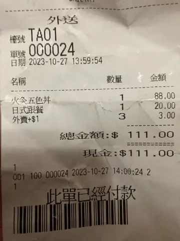 听人讲呢间嘢几好食,但只做到月尾,就专程去支持吓。真系估唔到咁就自投罗网,亲身体会到呢间野点解会执。叫咗个火炙五色丼($88),店员问跟唔跟餐(加$20),见睇个餐牌又面豉汤,又茶碗蒸,又小食又饮品都叫唔错就加啦。结果攞嘅时候茶碗蒸又冇,小食又冇,走返去问个店员佢就好理直气壮咁话茶碗蒸太热外卖俾唔到你,个小食都好莫名其妙咁顺便无埋。佢哋又识玩啊,明知外卖加$20得碗面豉汤同支嘢饮仔都唔会出声,问跟唔跟餐时唔会主动讲外卖唔包茶碗蒸同小食,就算问佢跟餐有乜嘅时候都只会答面豉汤饮品𠮶啲,等人自然以为其他都跟,提都唔会提茶碗蒸又冇小食又冇。到攞餐发现乜都冇嘅时候问个店员佢先讲所谓加二十跟餐就系得碗面豉汤同埋支嘢饮,其余乜都冇,你买嘅时候冇了解清楚就系你问题。个店员熟练嘅应对应该都唔系第一次,应该就系睇死啲客唔会追究个廿鸡。最好笑嘅系茶碗蒸又冇俾,小食又冇俾,但外卖盒就收足你三个嘅价钱。真系连𠮶一蚊都要贪到尽。个饭味道就正正常常,不过成肚气食乜都冇心情。真系唔知系就执所以咁唔老实,定系咁唔老实所以先要执。不过如果之前嘅经营手法都系咁唔老实嘅话都真系难怪冇回头客,俾你呃到人一次当你叻啦,但你觉得有客会中过一次招之后仲帮衬你第二次?为咗赚多个十几二十,搞到自己个名臭晒,值得咩?…查看更多