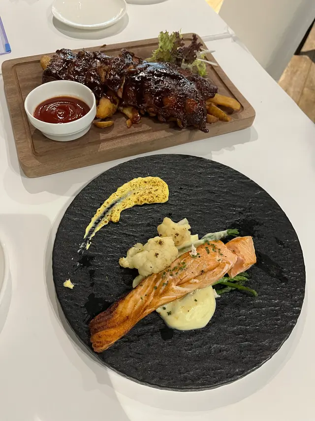 第一次食 已期待再訪 😍 Socy0609等级42024-03-2685 浏览 关注 已經聽過好幾個朋友介紹FAB,終於有機會嚟試吓,工廈隱世西餐廳果然冇tag錯,一入到餐廳氣氛好好,平日夜晚都算多人但座位分隔得好開好寧靜佢哋有個二人套餐都幾抵,尤其是Appetizer 好吸引,不過a la carte嘅主菜選擇我哋揀啱食,所以最後散叫。臨走時同店員Pang談兩句,原來佢哋四月開始有個酒店來嘅主廚,將會換上全新餐牌,我都非常期待再訪😍是日餐湯南瓜湯 $68法式傳統洋蔥湯 $68南瓜湯好幼滑,飲落每一啖都食到南瓜嘅清甜。洋蔥湯深啡色,湯底好清,味道比出面飲開嘅洋蔥湯少少偏酸,的確冇咁甜但幾清新,洋蔥當然都炒得好淋煙燻鰻魚煙肉蕃茄沙律 $98鰻魚厚肉幾彈牙,幾款沙律菜同蕃茄都好新鮮,再加上煙肉碎鹹鹹地成個沙律好fresh香煎挪威三文魚扒配蘆筍 $198三文魚扒熟度剛好,肉質軟滑鮮甜,配上creamy既芝士醬味道唔錯。餐牌只係寫配蘆筍,但其實仲有薯蓉同烤蔬菜秘製醬烤蜜汁豬仔肋骨配薯條 $288秘製醬汁酸甜好平衡,好食過現成BBQ醬好多,粗薯條外脆內軟份量好多,我掛住點個秘製烤醬都冇用茄汁😁 英式香蕉太妃批 $78食拖肥最怕甜椰椰,但呢個批係將拖肥放入批底,冇淋上多餘拖肥醬,加上店家自製屬少甜配方巨好味。上面再放咗香蕉同香而不膩嘅軟滑忌廉,食正餐食到飽飽再食甜品都唔覺膩😍…查看更多+ 8以上食记乃用户个人意见 , 并不代表OpenRice之观点。赞好分享第一次食 已期待再訪 😍 FAB Kitchen https://s.openrice.com/QrLT0ZzmeW0检举 张贴 评分4味道5环境5服务5卫生4抵食推介美食英式香蕉太妃批$78用餐途径堂食