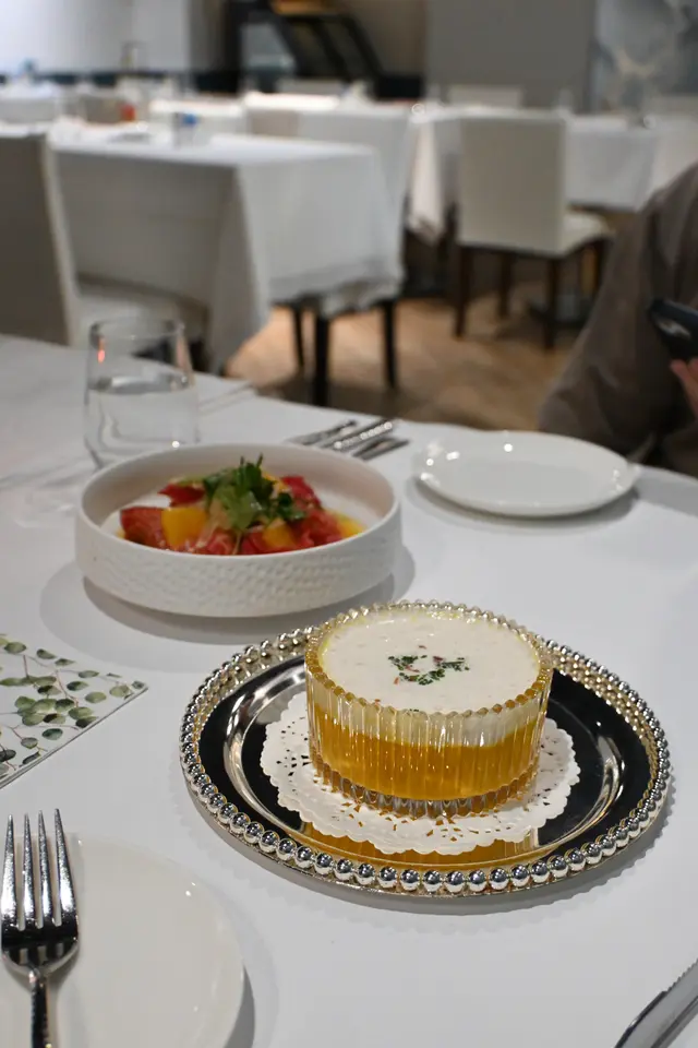 擺盤精緻嘅西餐(⁎⁍̴̛ᴗ⁍̴̛⁎) nwweat等级42024-03-2996 浏览 关注 Set Dinner $688-Bread-🥖麵包外層烘到脆同微暖啱啱好整溶啲牛油( ´▽` )ノ加埋牛油食好正-Salad-🐥慢煮雞肉 啤梨甜酸醬雞肉好嫩將雞肉一片片放成花形🌹好有心思!醬汁酸酸哋幾開胃🐟吞拿韃靼 蓮藕檸檬醬我好鍾意食呢個(˶‾᷄ ⁻̫ ‾᷅˵)炸脆左嘅蓮藕加吞拿魚蓉好夾好開胃~-Appetizer-🫧阿根廷紅蝦 配奶油泡泡好靚(⁎⁍̴̛ᴗ⁍̴̛⁎)蝦肉質結實蘿蔔醃過,酸酸哋開胃🥑牛油果 番茄凍 法式番茄慕斯牛油果打成蓉蕃茄整到啫喱咁好得意-Main-🦆法式油封鴨腿塊皮整到好脆,啖啖肉ʕ •ᴥ•ʔ有椰菜粒同酸菜墊底翠肉瓜好好食(˶‾᷄ ⁻̫ ‾᷅˵)焗到外層乾身,入面keep到juicy平時唔鍾意食翠肉瓜嘅我都覺得好食!🐏意大利紅酒燴澳洲羊膝羊膝有少少羊味但唔會好騷個薯蓉好好食!好食到我不自覺咁𢳂黎食食到朋友話我就嚟食曬啲薯蓉無留比佢\(°∀° )/ 薯仔、紅蘿蔔都好入味-Dessert-🧁英式香蕉太妃批 +$50好味ʕ •ᴥ•ʔ表面有類似tiramisu 嘅 cream 焦糖醬嘅餅底餐廳話特登減糖,所以唔會似英國整到咁甜甜度對我黎講啱啱好-Drink-🍹檸檬茶🍵綠茶另收加一服務費…查看更多+ 8以上食记乃用户个人意见 , 并不代表OpenRice之观点。赞好分享擺盤精緻嘅西餐(⁎⁍̴̛ᴗ⁍̴̛⁎) FAB Kitchen https://s.openrice.com/QrLT0CI1I00检举 张贴 评分5味道5环境5服务5卫生4抵食用餐途径堂食