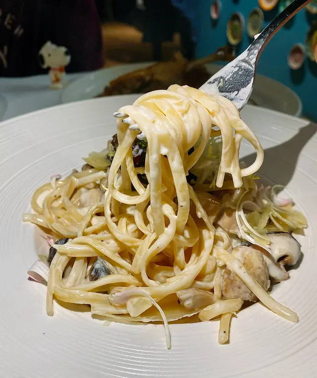 藍白格調西餐廳 fcnga等级42024-04-0376 浏览 关注 見到呢間餐廳係藍白色風格嘅西餐廳,今次揀咗lunch時間去試,叫咗個lunch set,裏面包括餐包、頭盤、主菜同甜品!芝麻餐包係餐包面頭佈滿滿滿嘅芝麻,而且好有芝麻香味,食落仲好暖笠笠!而沙律係黑醋蘑菇沙律,沙律裏面係將炸蓮藕片同沙律菜一齊食好fresh,加埋黑醋嘅酸酸甜甜好開胃🤤另外就叫咗香草檸檬牛油焗盲曹魚,魚肉有鮮味、而且魚皮煎得好脆卜卜,加埋茴香櫻桃蘿蔔、大蒜,一齊食非常夾!甜品就係培茶芝士蛋糕,培茶味嘅茶香好香濃,甜得嚟又唔會好膩!而芝士蛋糕就好香滑,撘配培茶味好match!…查看更多以上食记乃用户个人意见 , 并不代表OpenRice之观点。赞好分享藍白格調西餐廳 FAB Kitchen https://s.openrice.com/QrLT053PI00检举 张贴 评分4味道4环境4服务4卫生4抵食用餐途径堂食