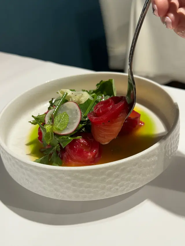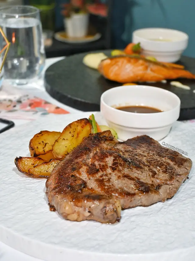 🧸【大玩創意度嘅西式料理🥩】 🌞 C.ooking Bear等级42024-04-15638 浏览 关注 有幸係換咗大廚之後嘅第4日就上到嚟食嘢😋新廚之前係米芝蓮餐廳坐陣,所以對佢都幾有信心😌餐廳坐得舒服,咁我哋就可以慢慢享用呢一餐🍴➷🪐 南瓜湯配煙肉泡沫南瓜湯稀杰程度啱啱好,有濃香嘅南瓜味🎃面頭嘅煙肉泡沫成為咗焦點🥓每一口滲透煙肉香氣而又不油膩👍🏼§🪐 自家製紅菜頭醃三文魚配橙肉苘香沙律既有特色又開胃嘅一道前菜😋紅菜頭嘅味道不但無搶走三文魚嘅魚香🐟配合埋微酸嘅橙汁做底,帶動起整個前菜嘅清新感😌咁樣嘅配搭又幾特別!§🪐 柚子蜜雞翼對比之下,佢就唔算得上係好特別嘅一個菜式🤔柚子味夠晒濃厚,略嫌佢咸咗些少🤏🏼§🪐 輕煎三文魚配香蔥檸檬牛油汁三文魚煎得金黃,掌握嘅時間同火喉都好完美💯肉質唔會嚡口,仲依然留有好重嘅魚香😶🌫️配上香蔥檸檬牛油汁,味道唔會太搶口蓋過魚味👍🏼§ 🪐 紐西蘭草飼肉眼扒配燒香草牛油焗薯一上枱就有一陣肉香飄埋黎😌要把握影相嘅時間,否則肉眼扒就會因為殘留嘅熱力而變熟😂佢肉質好嫩滑,容易咬開,肉味非常濃郁🤤大廚煎嘅時候已經放咗少少鹽🧂所以沾唔沾醬汁都得!§ 🪐 牛角窩夫配十勝紅豆醬及抹茶忌廉抹茶粉嘅味道偏向濃身,所以配返忌廉食可以中和返苦澀味🍵 紅豆甜而不膩,加埋新鮮即製嘅牛角窩夫食就perfect🧇➷換咗廚師之後食物都有返水準👍🏼值得一去俾多啲意見佢哋😋➷🧸🌞 𝗖.𝗼𝗼𝗸𝗶𝗻𝗴𝗯𝗲𝗮𝗿推介指數 👉🏼👉🏼8️⃣🌟…查看更多+ 6以上食记乃用户个人意见 , 并不代表OpenRice之观点。赞好分享🧸【大玩創意度嘅西式料理🥩】 🌞 FAB Kitchen https://s.openrice.com/QrLT0MuTI00检举 张贴 评分4味道5环境5服务5卫生4抵食推介美食南瓜湯配煙肉泡沫自家製紅菜頭醃三文魚配橙肉苘香沙律自家製紅菜頭醃三文魚配橙肉苘香沙律柚子蜜雞翼輕煎三文魚配香蔥檸檬牛油汁輕煎三文魚配香蔥檸檬牛油汁紐西蘭草飼肉眼扒配燒香草牛油焗薯紐西蘭草飼肉眼扒配燒香草牛油焗薯牛角窩夫配十勝紅豆醬及抹茶忌廉用餐日期2024-04-08等候时间5 分钟 (堂食)