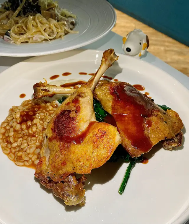工廈高質西餐 yeahbrain等级42024-05-15126 浏览 关注 今次同朋友去咗億利工業中心食FAB Kitchen,餐廳主打法國同意大利Fusion菜,環境闊落坐得舒適座,藍色格調都好優雅。我地叫咗$688 二人set dinner,包兩個沙律或湯,兩個前菜同兩個主食,麵包和飲品,性價比不錯‼❇️鵝肝批 青蘋果桃醬鵝肝好味後勁味道濃烈,蘋果、桃果香好甜,配鵝肝幾夾,食落幾清新💚❇️咸豬手肉 法式凍批❇️帕瑪火腿片無花果開胃菜都幾好味,Pamaham肉質鹹度適中,而咸豬手肉有鹹香味,亦有少許香草味😋😋❇️主菜- 香煎銀雪魚 三文魚子 菠蘿清酒泡沫一上碟已經聞到香煎魚味,非常吸引❣️ 魚質好滑好嫩,油脂豐富,幾易切開魚肉而唔散,配上三文魚子嘅鹹味口感層次豐富,菠蘿清洒亦唔會蓋過銀雪魚嘅鮮味👍❇️主菜-法式脆皮烤鴨胸 藍莓香醋醬烤鴨煎得少少脆皮,鴨味好出,油脂感重,肉質煙韌有口感,加埋酸甜既香醋醬十分惹味😋❇️檸茶❇️美果洋甘菊茶 整體用餐體驗及食物質素十分滿意🥰👍👍…查看更多以上食记乃用户个人意见 , 并不代表OpenRice之观点。赞好分享工廈高質西餐 FAB Kitchen https://s.openrice.com/QrLT0orfJ00检举 张贴 评分5味道3环境4服务4卫生4抵食用餐途径堂食