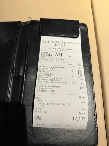 During my recent visit to Feast Oyster Bar and Restaurant, I had a mixed dining experience. The restaurant's elegant decor initially created a positive impression, but there were some aspects that fell short of expectations. While the atmosphere was pleasant, there were areas that could benefit from improved cleanliness and attention to detail. The staff, although friendly, could benefit from additional training to enhance the overall customer service.…查看更多