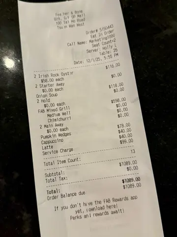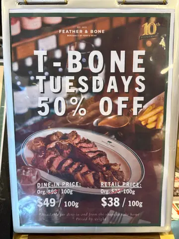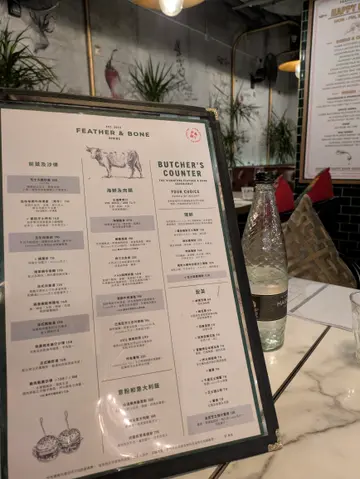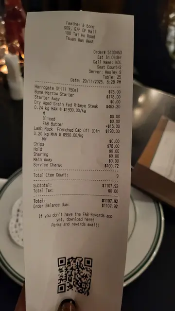 今次专登带牛痴过嚟海之恋Feather & Bone,估唔到商场里面藏住咁高质扒房!楼底高配复古皮梳化,开放式肉柜望见原块干式熟成牛肉,零售区睇见全冰柜各国靓牛、羊, 全部任君选择! 那炭烤香飘过嚟已经流口水, 立即亲自拣定心水肉扒,交俾厨房的师傅即场料理,成个过程似高级肉档混合私房厨房,仪式感爆灯💫▪️ 灵魂前菜:Bone Marrow Starter烤到滋滋响嘅牛骨髓,用匙羹一刮——油润膏状质感撞脆多士,浓郁骨胶原感令人即刻忘却卡路里▪️ 肉食主场双拼:•Dray aged grain fed Ribeye Steak (0.24kg)亲自拣嘅干式熟成肋眼特别有感情!30日干式熟成肉眼扒切开透出玫红肌理,外层焦脆内里柔嫩,FAB秘制牛油融化后渗出迷人香气及口感•Lam Rack frenched cap off (0.2kg)法式修边羊架锁住肉汁,轻轻切开已经感受到弹性,淡粉红色羊肉味道层次分明, 炭烤味极香, 简单撒海盐已经带出草原气息! ▪️ 疯狂回购位:Chips配神级 Truffle mayo粗薯条炸到外脆内绵,重点系𠮶碟mayo——松露香气浓郁,薯条未食晒酱已见底逢星期二T Bone之夜已经mark实下次庆祝!下次坐室外, 望住海境及圣诞装饰,终于明点解有人成日话「食肉都要有格调」🔥…查看更多