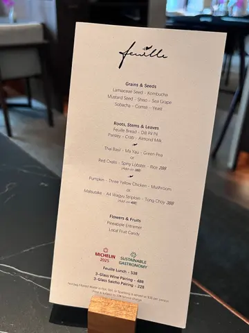 适逢Restaurant Week,经 dining city 预订了位于中环地段,2024及25年荣获米芝莲一星及绿星的Feuille,是一间采用本地生产及有机农场的食材,结合法式烹饪手法,能提供独特的用餐体验的餐厅。🌺菜单设计围绕植物的生命周期,从谷物和种子开始,到叶茎和根,最后再到花朵和果实。🌙晚餐:连头盘同甜品共4道菜,$1088/人(未计加一)✨。-What we ordered🎈🌱Grains & Seeds🔹Appetizer:• Lamiaceae Seed - Kombucha• Mustard Seed - Shiso - Sea Grape• Sobacha - Comté - Yeast🌻Roots, Stems & Leaves 🍃 🔹Bread:• Feuille Bread - Dill Pil Pil 🎃🍞🔹Starter:• Pumpkin Seed - Kuruma Prawn - Grapefruit• Nasturtium - Wild Fish - Pumpkin• Back Truffle - Potato - Chinese Chive🔹Main:• Mushroom - Three Yellow Chicken - Chestnut🌺 Flowers & Fruits 🍇 🔹Desserts:• Banyuls - Fig - Spice• Origins• Marigold - Pollen• Local Fruit Candy-餐厅的名字意为“叶子”象征著自然和新鲜的食材。从简约的装潢到菜单设计,餐厅展现出其Eco-Friendly理念💚。摆盘使用大量干花及植物学元素,让人置身于花丛之中,每道菜品不仅美味,还充满意义。全餐头盘到主菜食物质素都不错,最印象深刻的是焗紫色薯仔,配上黑松露酱汁,很美味。而甜品是走fusion风格,很创新,但个人不是太喜欢,味道亦偏甜,可能还是经典的口味才适合我吧😆。-#footage_hk #central #hkrestuarant #中环 #中环美食 #diningcityhk #michelin #michelinpower #米芝莲…Read More
